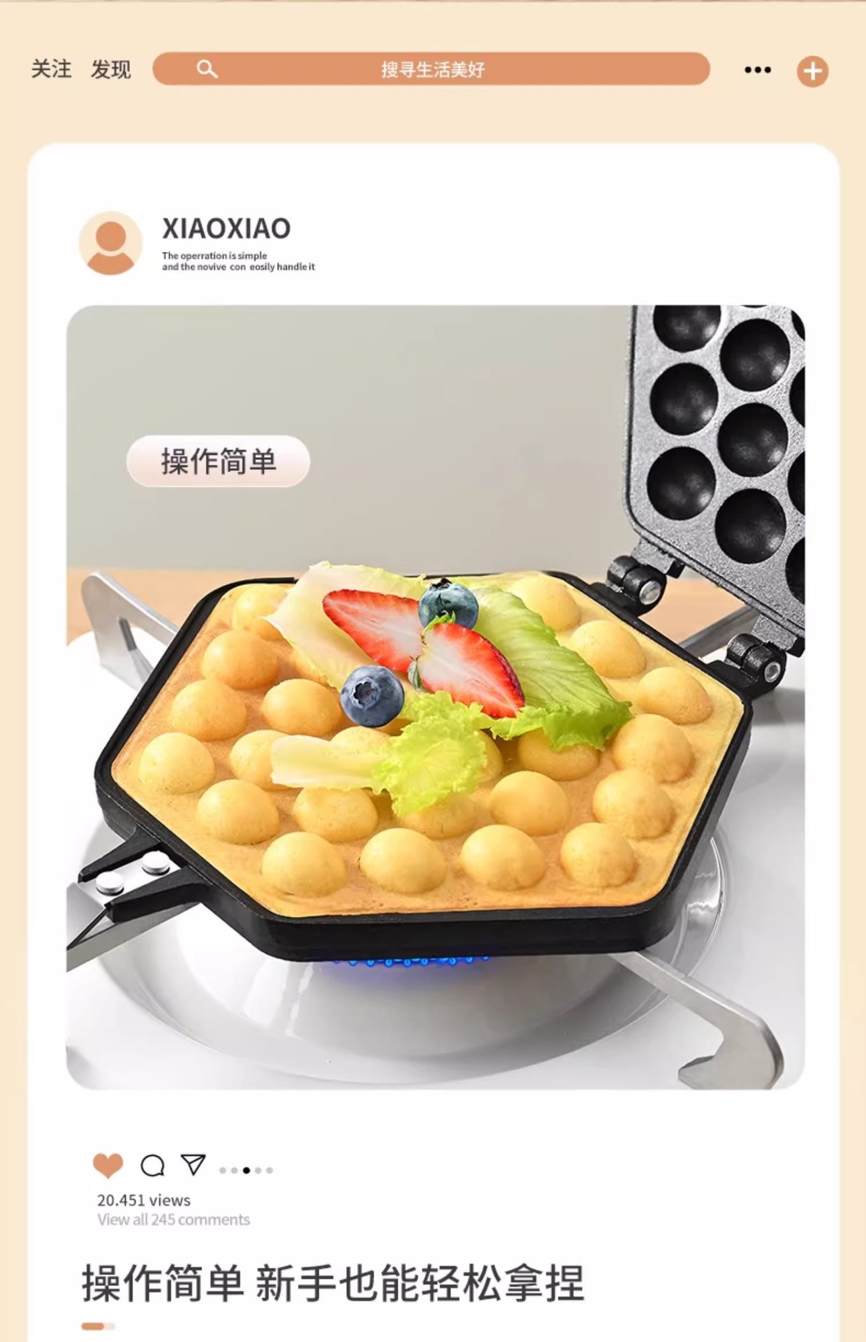 ![]() | [enlarged and thickened double-sided heating] hong kong style egg waffle mold [comes with oil brush + steel needle] | ¥42.15 / ≈ 508 ₽ | 198 | 6128106818935 | |