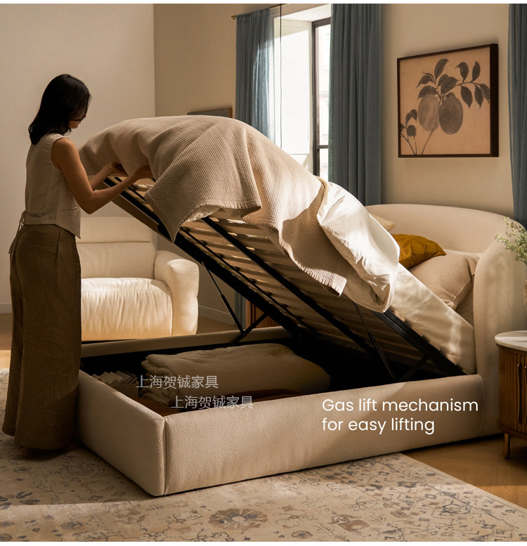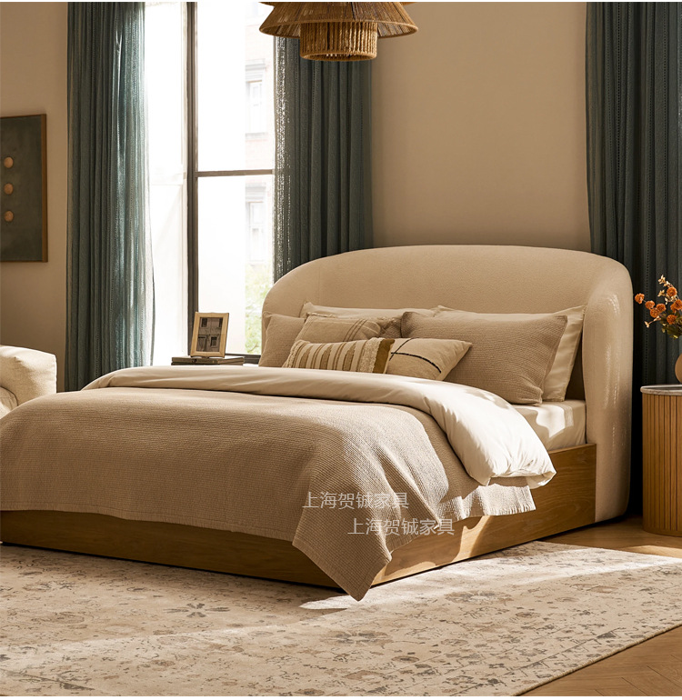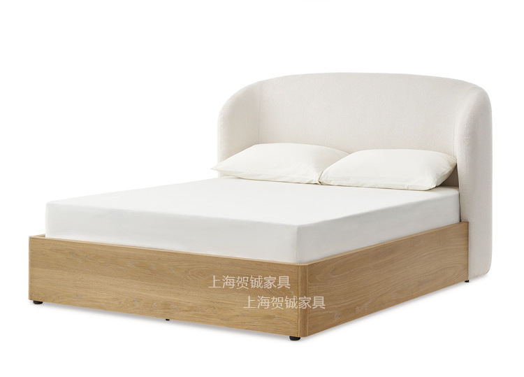 Северная кровать из массива дерева в стиле Wabi-Sabi с двуспальным тканевым хранилищем французского середины века 1.8 м