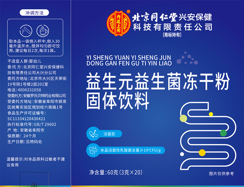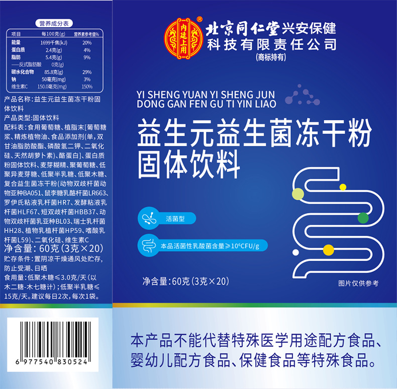 Номер товара Beijing tongrentang xing'an health technology co., ltd. prebiotic probiotic freeze-dried powder solid drink