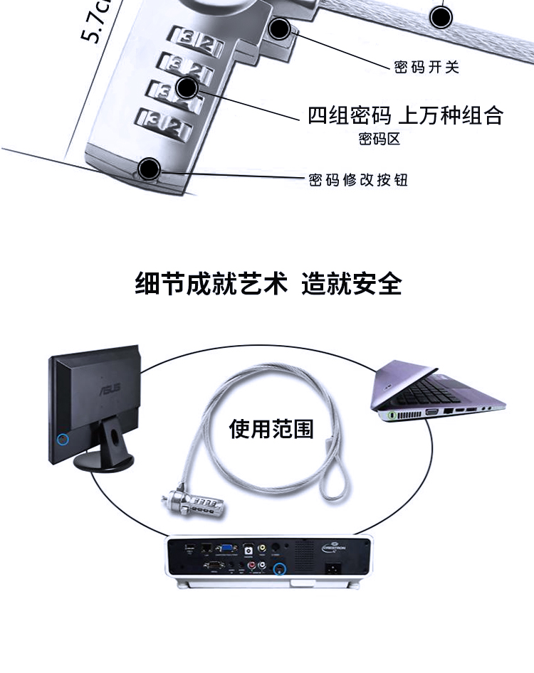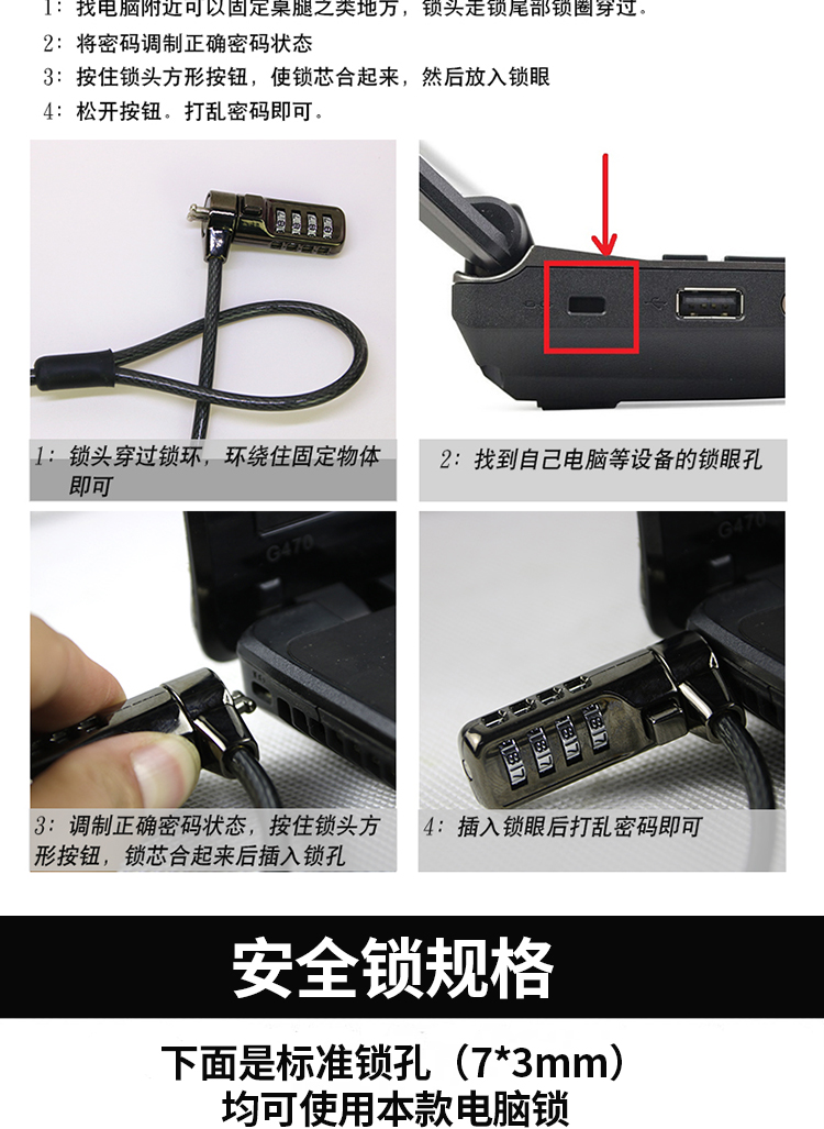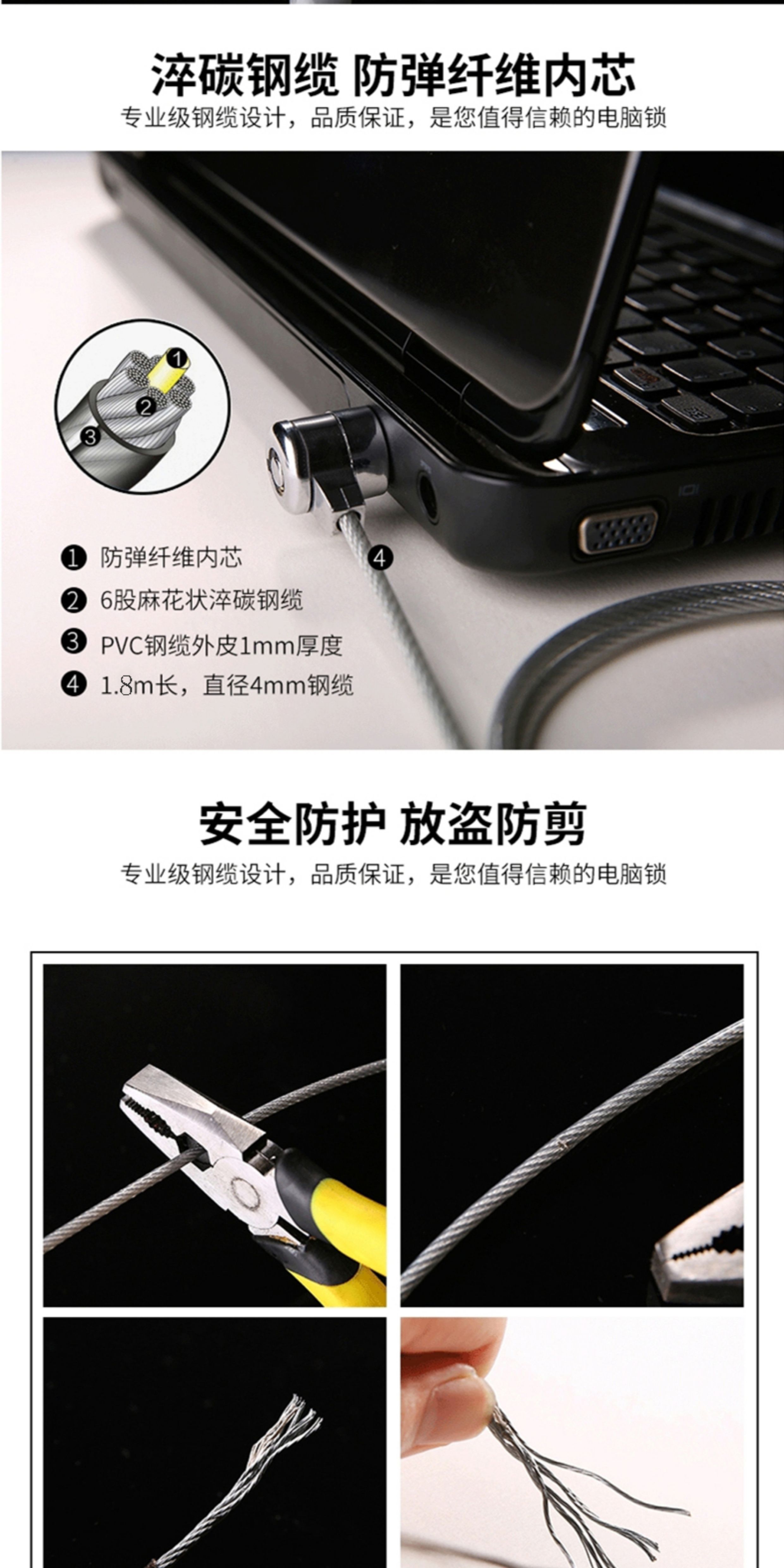 Замок против кражи для ноутбука в наличии с четырехзначным кодом, портативный замок с кабелем длиной примерно 1.8 м