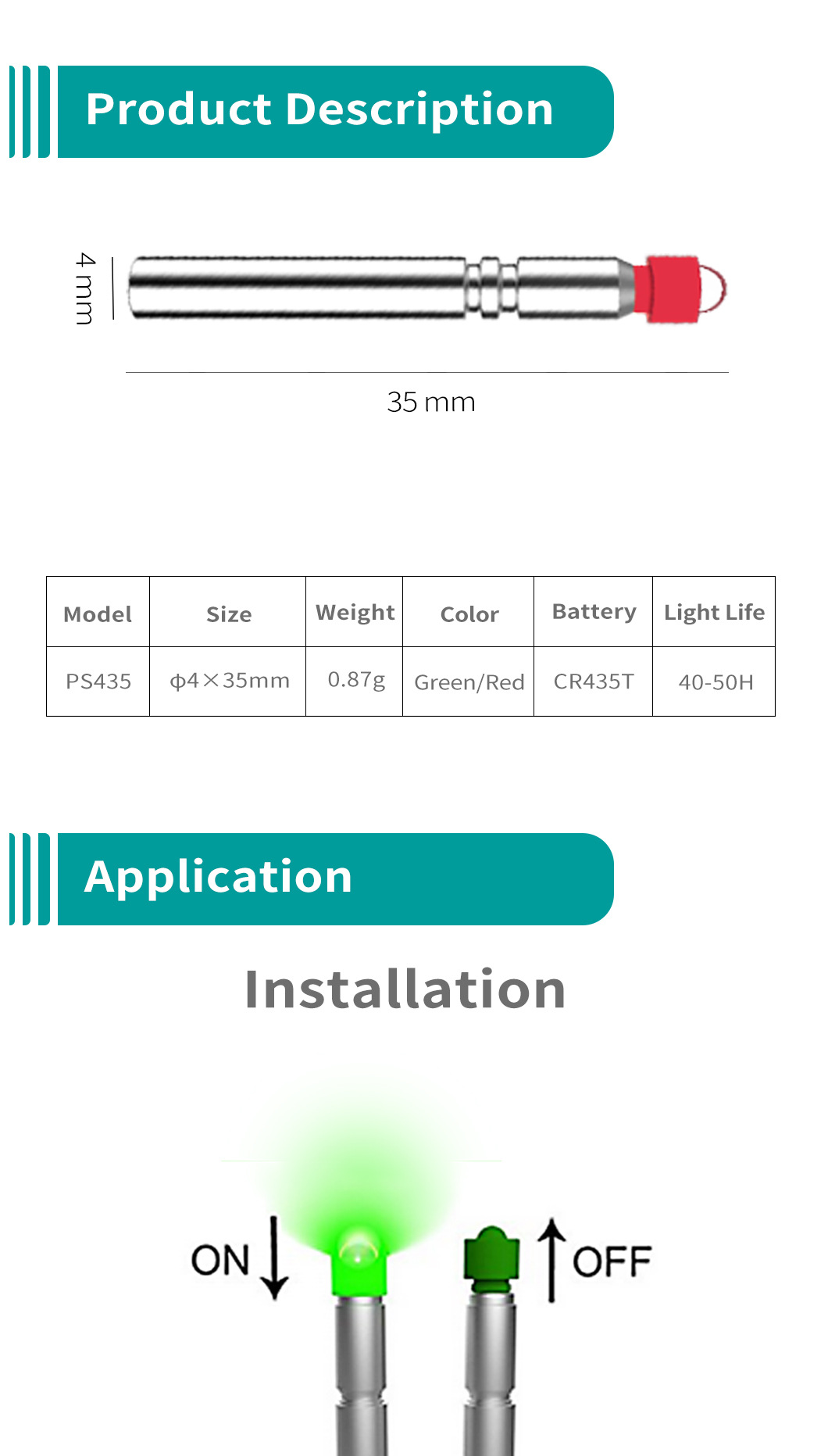 Светящийся кончик удочки Danny Fu Dlyfull Arrow Tail Ps435/Ps327/Ps316 с LED подсветкой