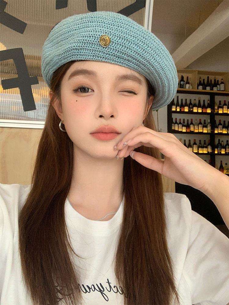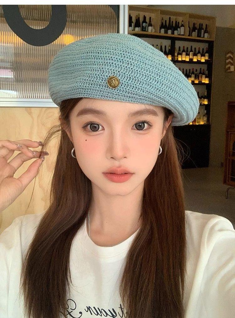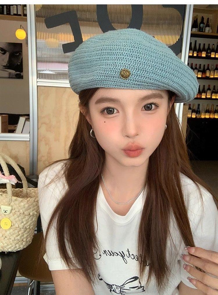 Модная женская шляпа 2024 года, тонкая дышащая весенне-летняя шляпа, беретка с вырезами, универсальная шляпа для художников, визуально сужающая лицо