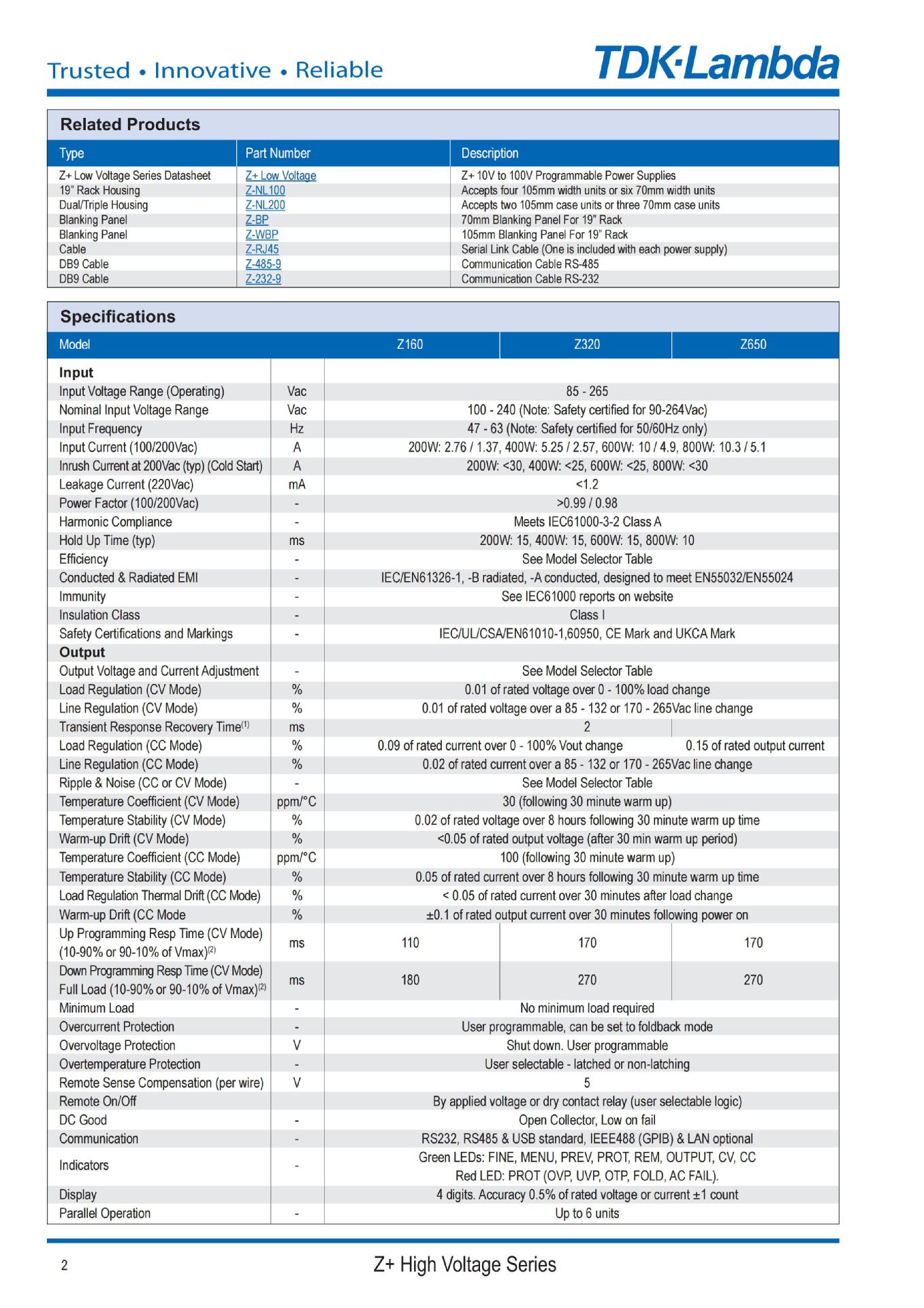 Программируемый источник питания постоянного тока Tdk-Z160-5/Z160-4/Z320-2/Z650-1 серии Z+ с высоким напряжением