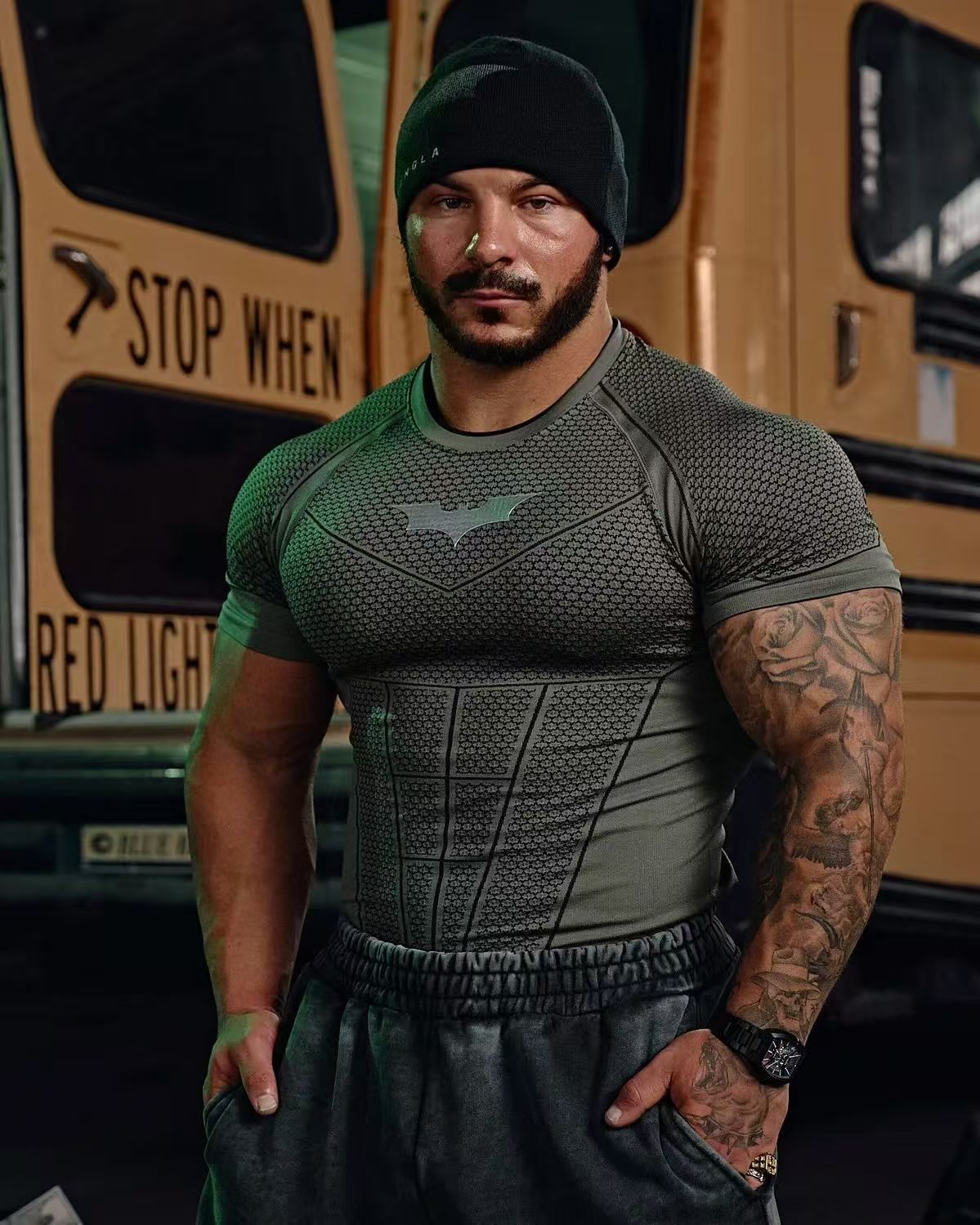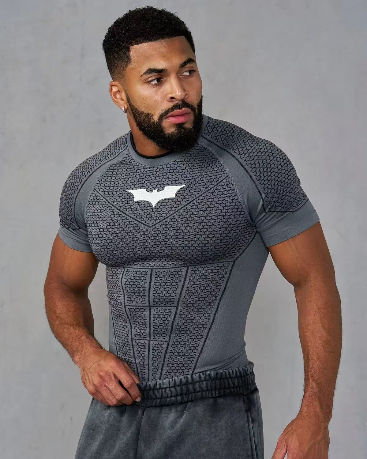 Совместная марка Youngla Бэтмен новая мужская облегающая футболка для джоггинга спортивная фитнес одежда для бега быстросохнущая футболка с коротким рукавом