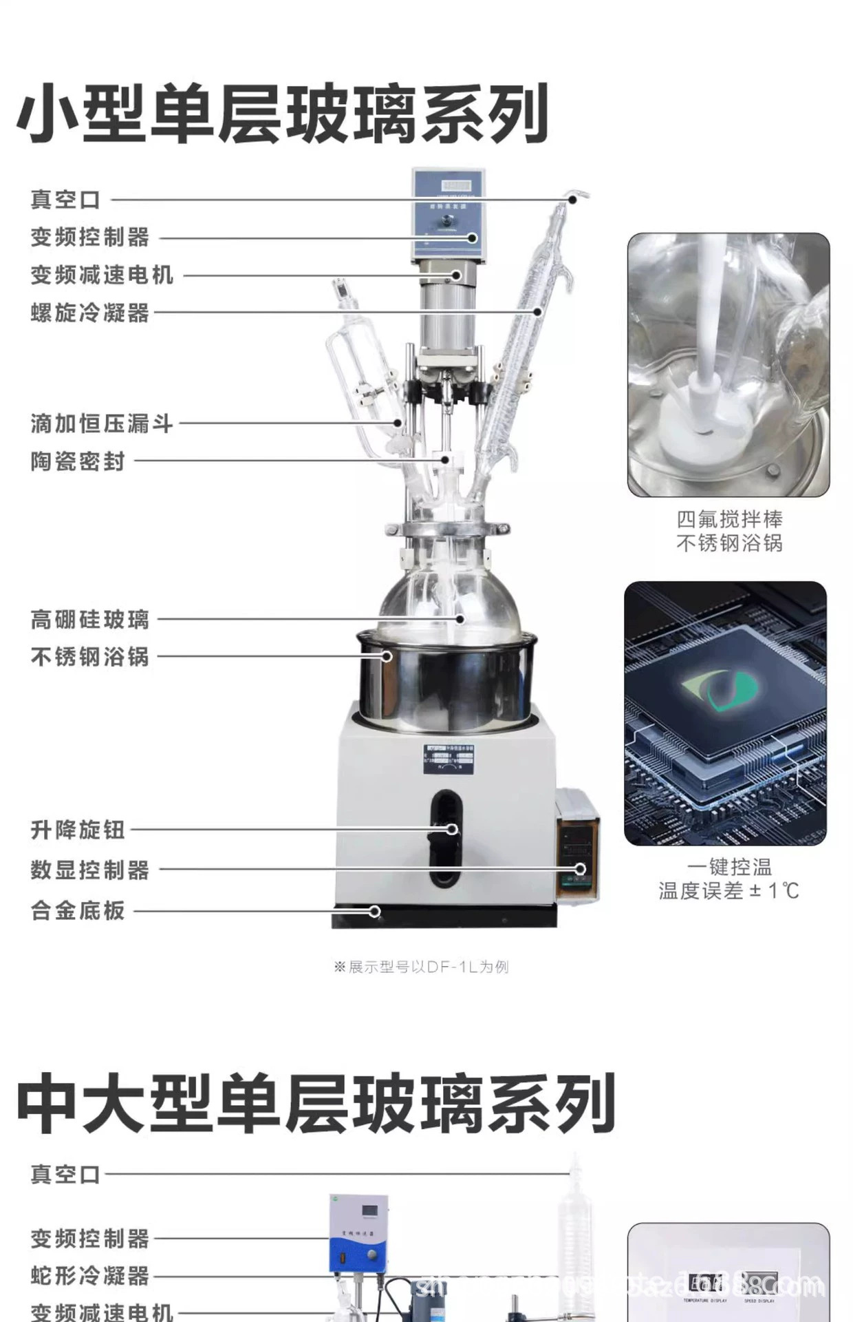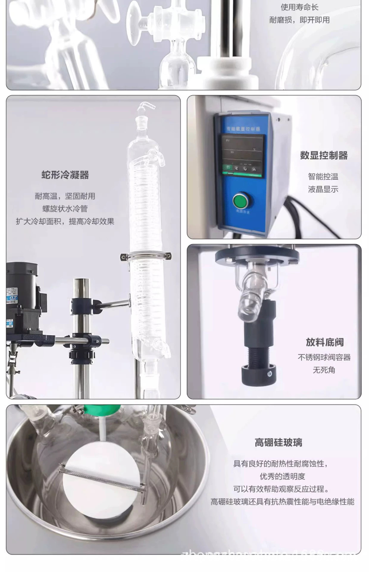Однослойный стеклянный реактор, лабораторный электрический реактор с перемешиванием и подогревом, малый химический дистиллятор 1L-200L