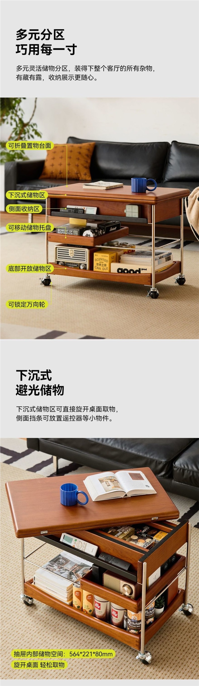 Кофейный столик из массива дерева для гостиной, винтажный стиль, для малогабаритных квартир, переносной складной кофейный столик, боковой столик для дивана, Kunwei