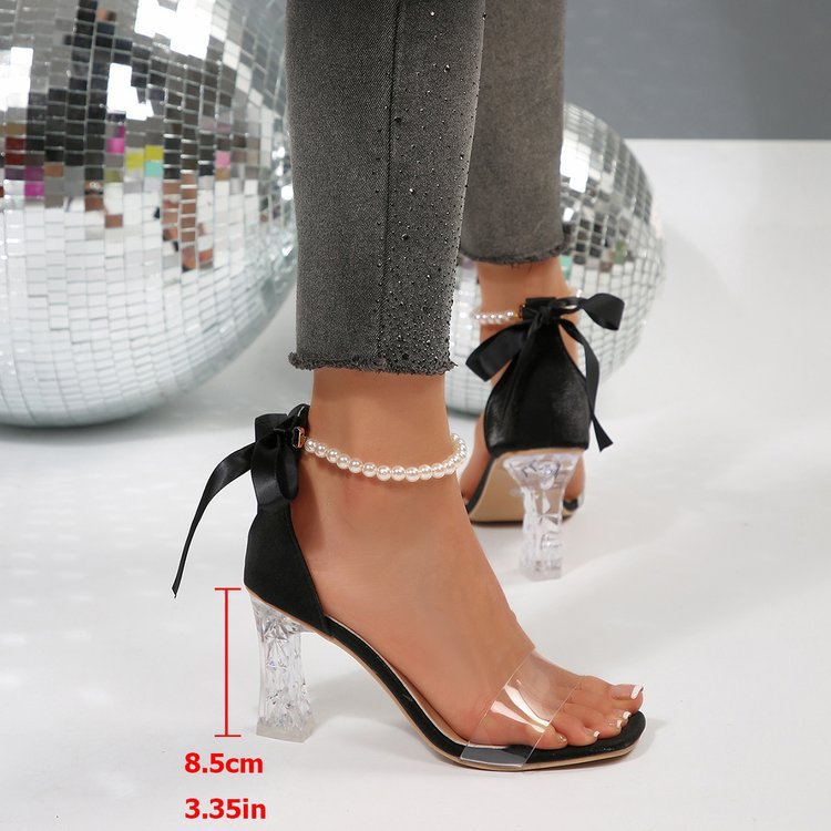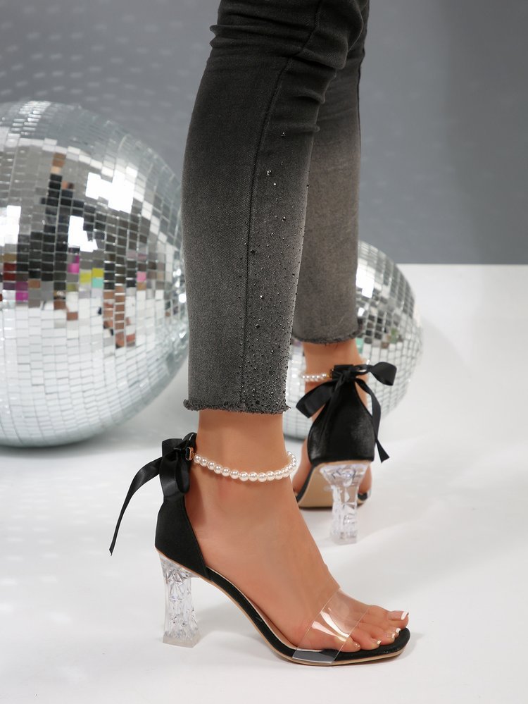 Новые летние туфли с квадратным носком для женщин 2025 года, дышащие сандалии на прозрачном толстом каблуке