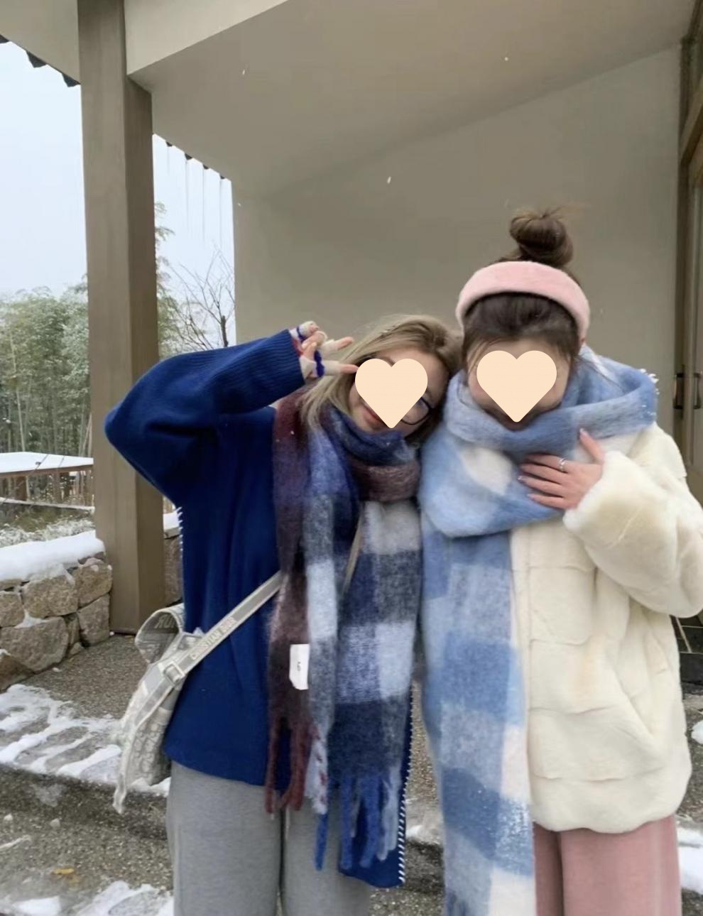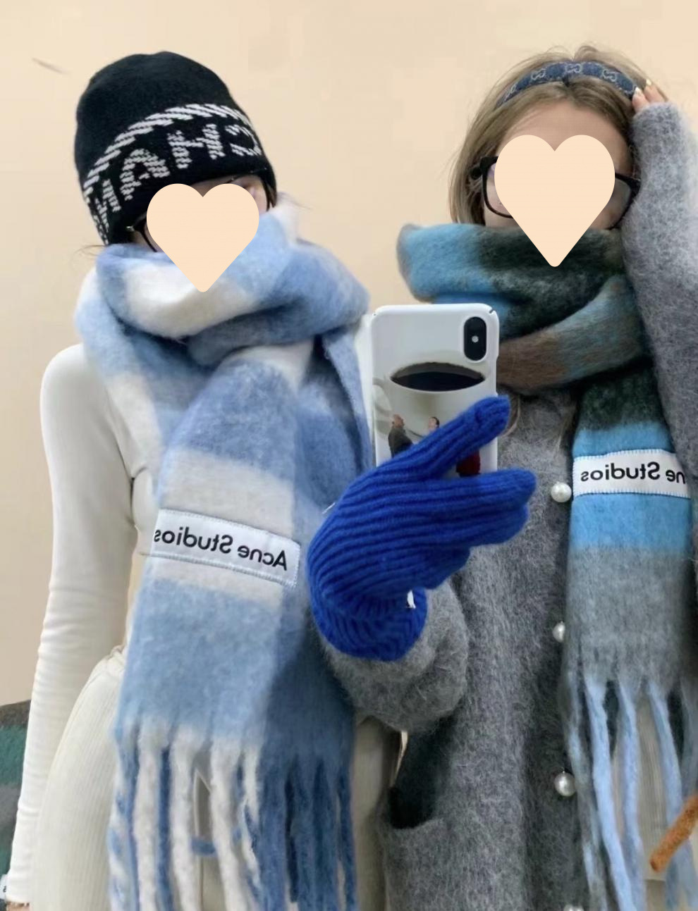Новый осенне-зимний утолщенный теплый шарф в радужную клетку, европейский и американский стиль, петля пряжи, толстые кисточки, цветной шаль