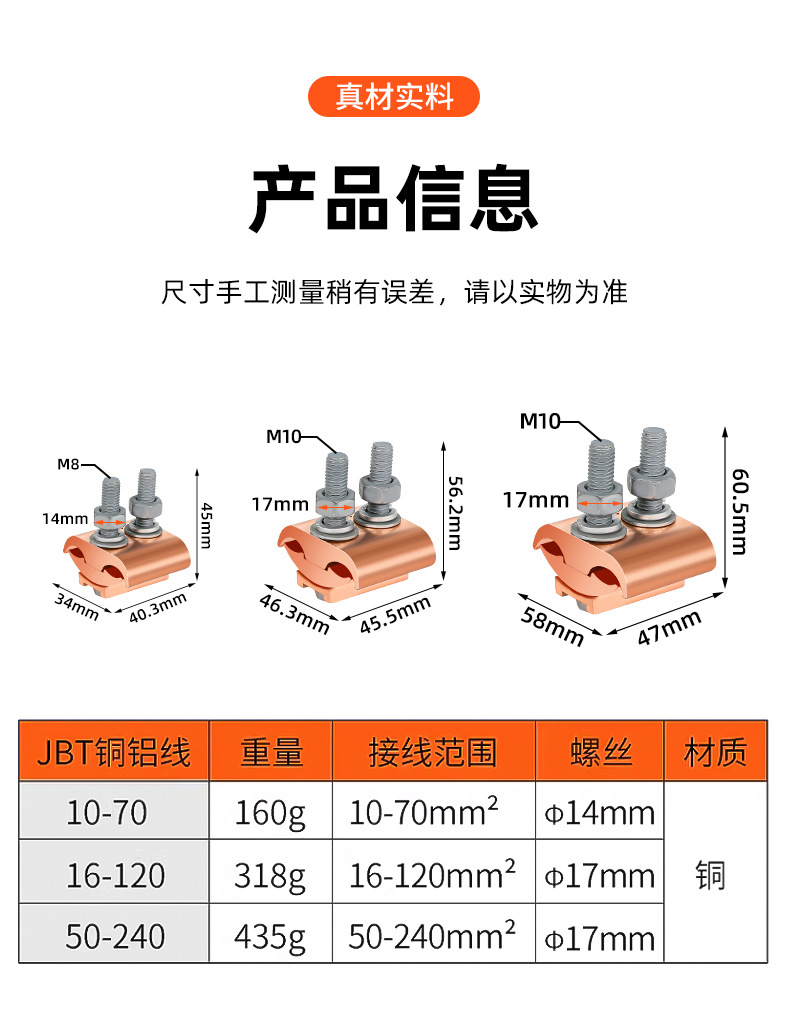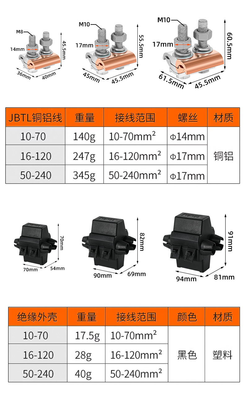 📦 | Jbtl50-240|composite copper and aluminum wire clamp|with shell | ¥16.76 / ≈ 202 ₽ | 200 | 6135787163592 | |