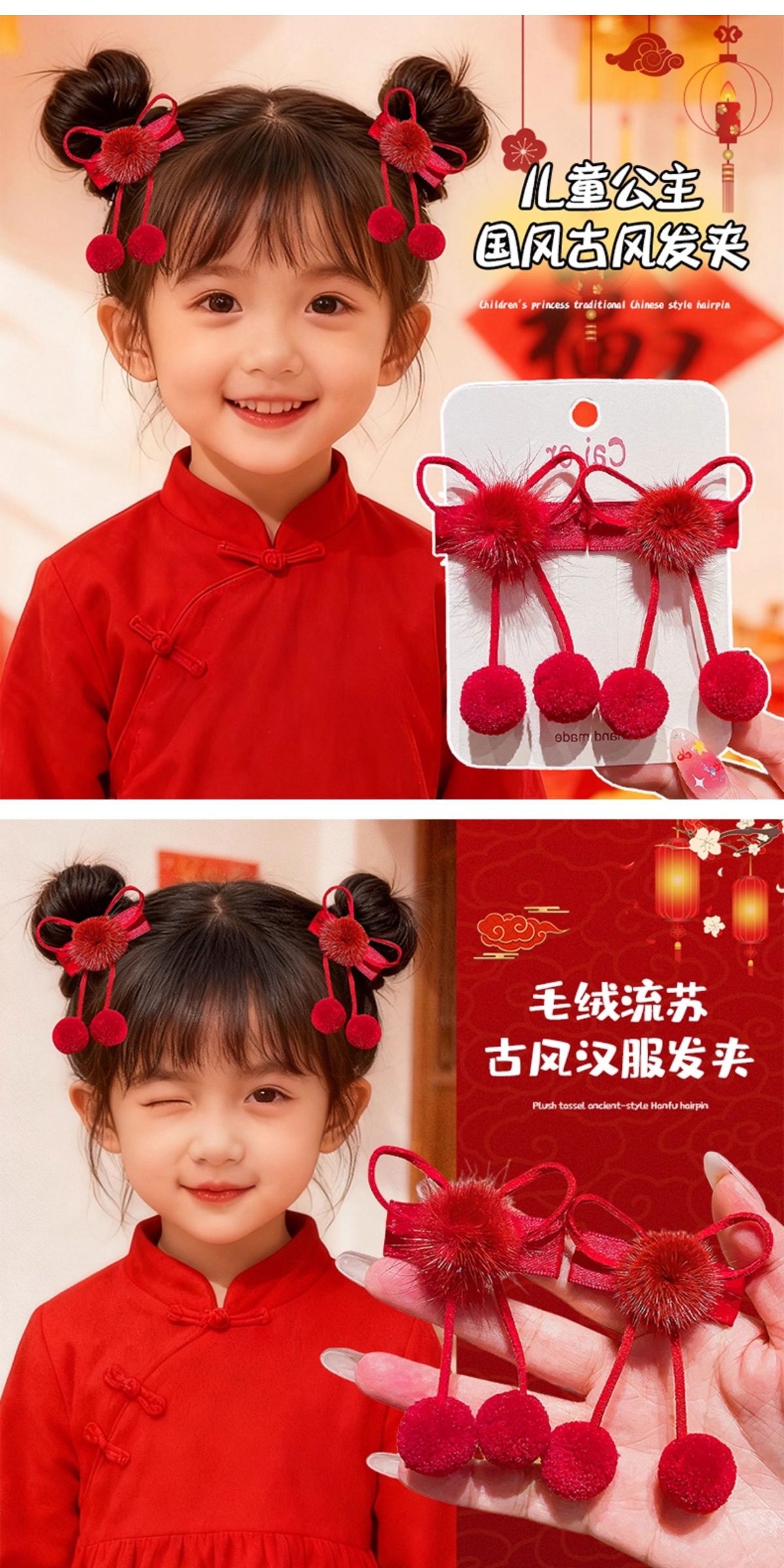 Аксессуары для волос для девочек, красная древняя заколка в китайском стиле