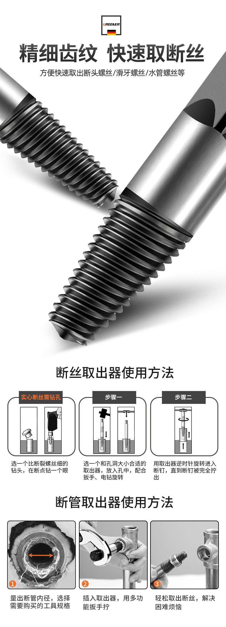 Извлекатель сломанного провода Green Forest, инструмент для удаления винтов, сломанный провод, водопроводная труба, обратная проволока, скользящий кран