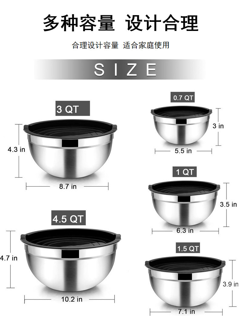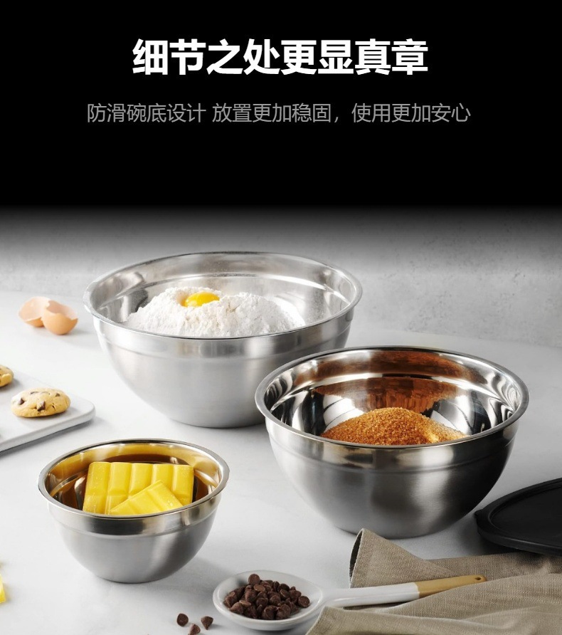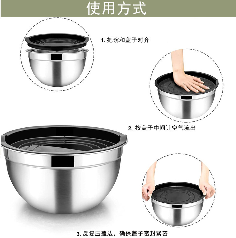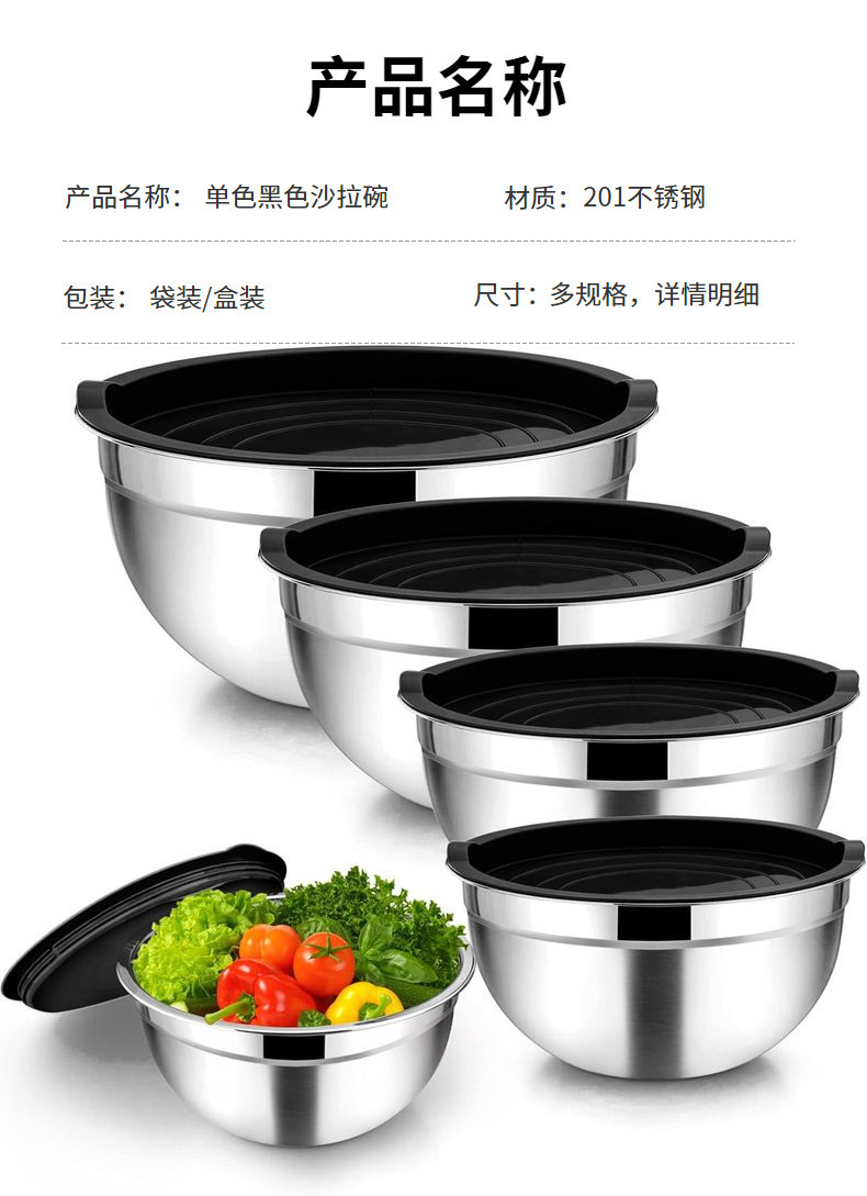 Утолщенная салатница из нержавеющей стали с черным силиконовым нескользящим дном и крышкой, набор для взбивания яиц, чаша для выпечки и смешивания, утолщенная