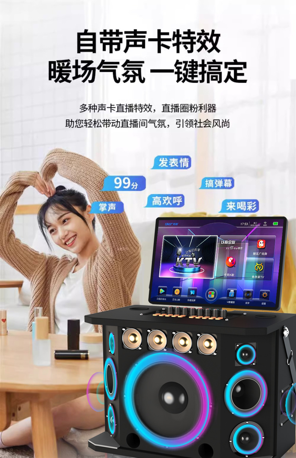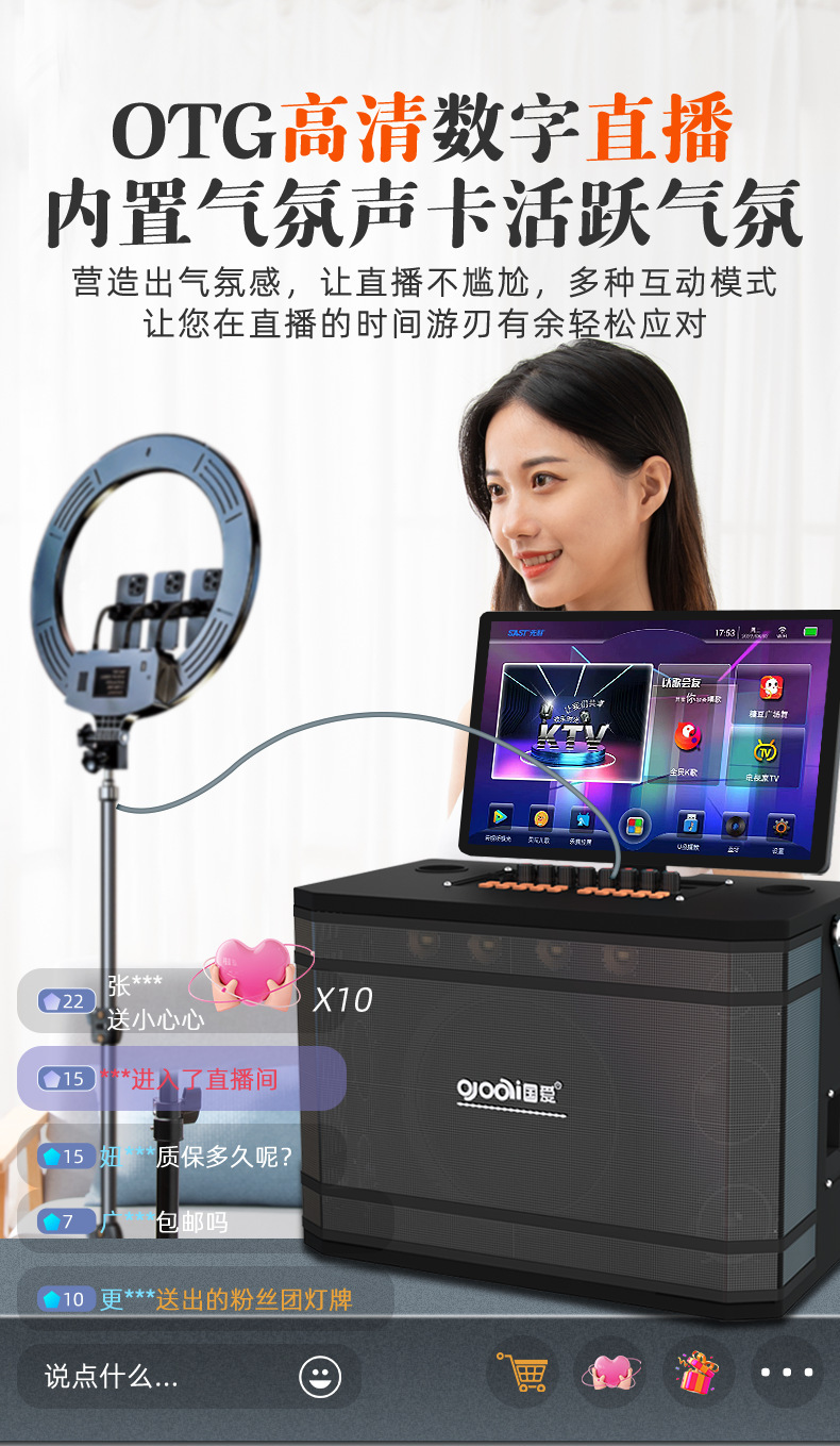 Аудиосистема Guoai Q8 для танца с дисплеем на открытом воздухе для караоке Все-в-одном домашний Ktv с большим экраном