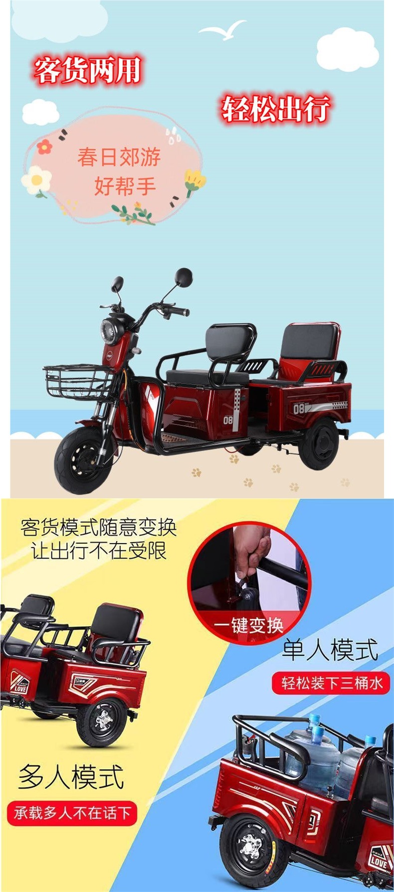 Новый электрический трицикл для взрослых, бытовой аккумуляторный автомобиль для перевозки детей и пожилых людей, двухрядный пассажирский и грузовой транспорт