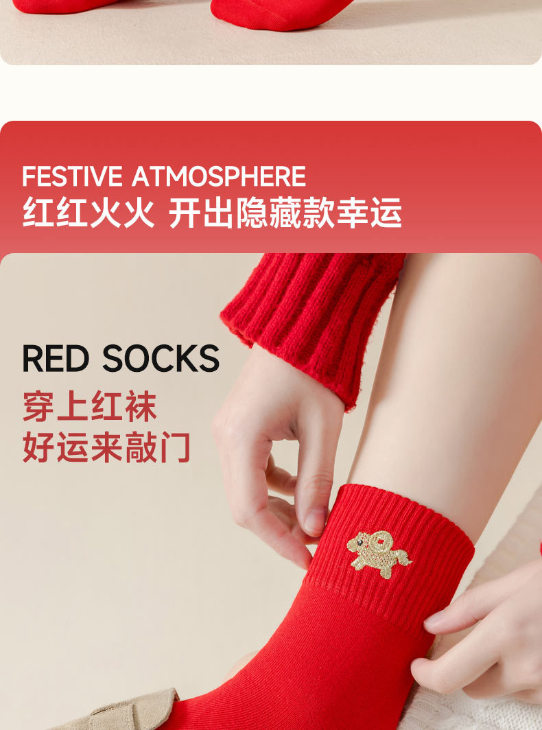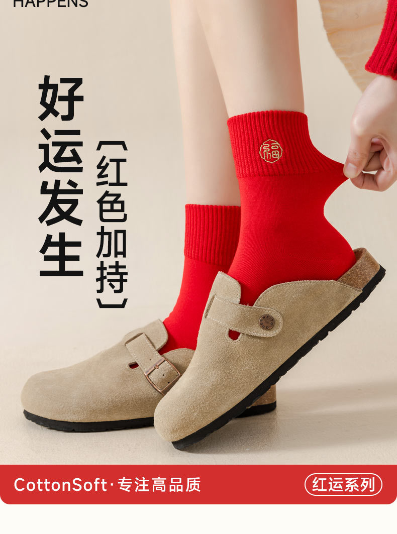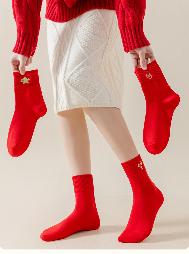 Красные носки для женщин года лошади, бесшовные хлопковые носки до середины икры с вышивкой, новогодние свадебные носки 2026 года осень/зима