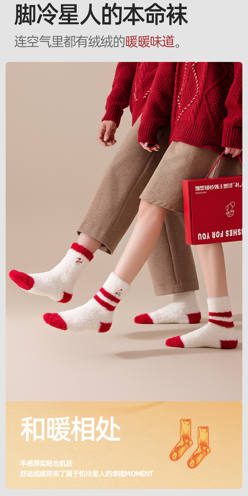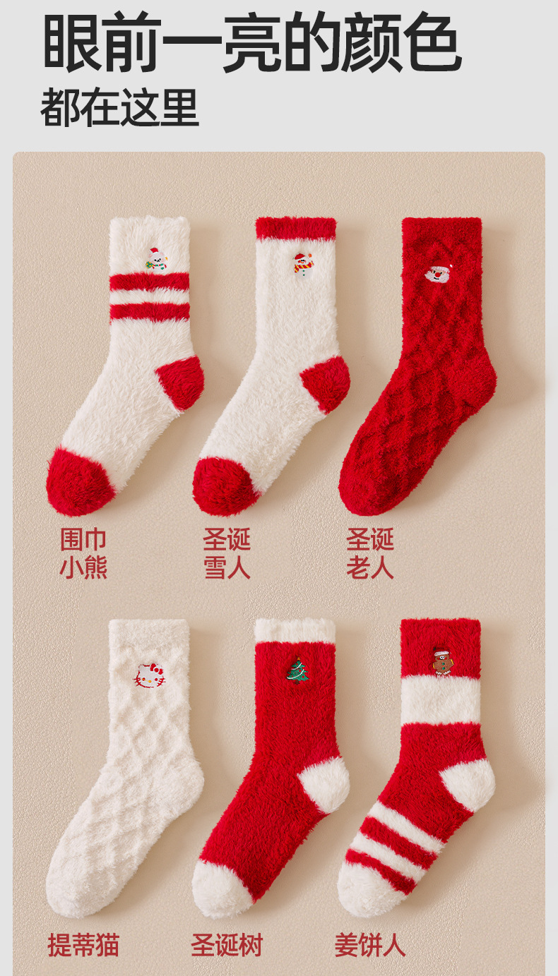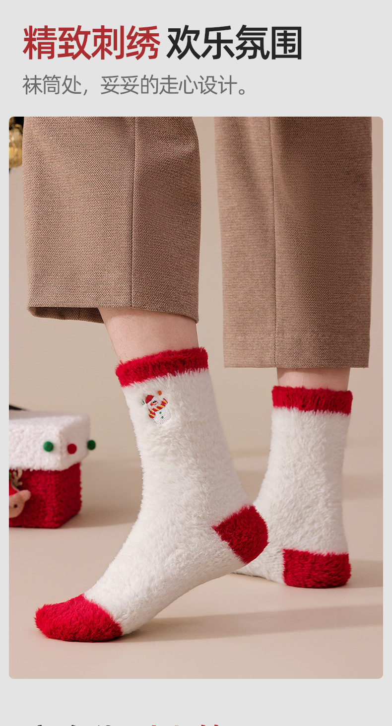 Рождественские коралловые велюровые вышитые красные носки для пар, не линяют, утолщенные и теплые, новогодние носки средней длины, домашние носки осень-зима
