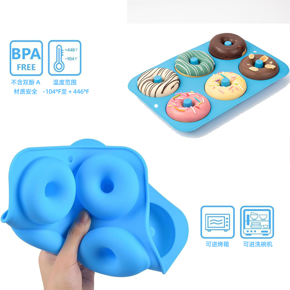 Силиконовая форма для пончиков пищевого класса, форма для выпечки с 6 ячейками, инструмент для DIY