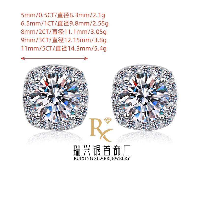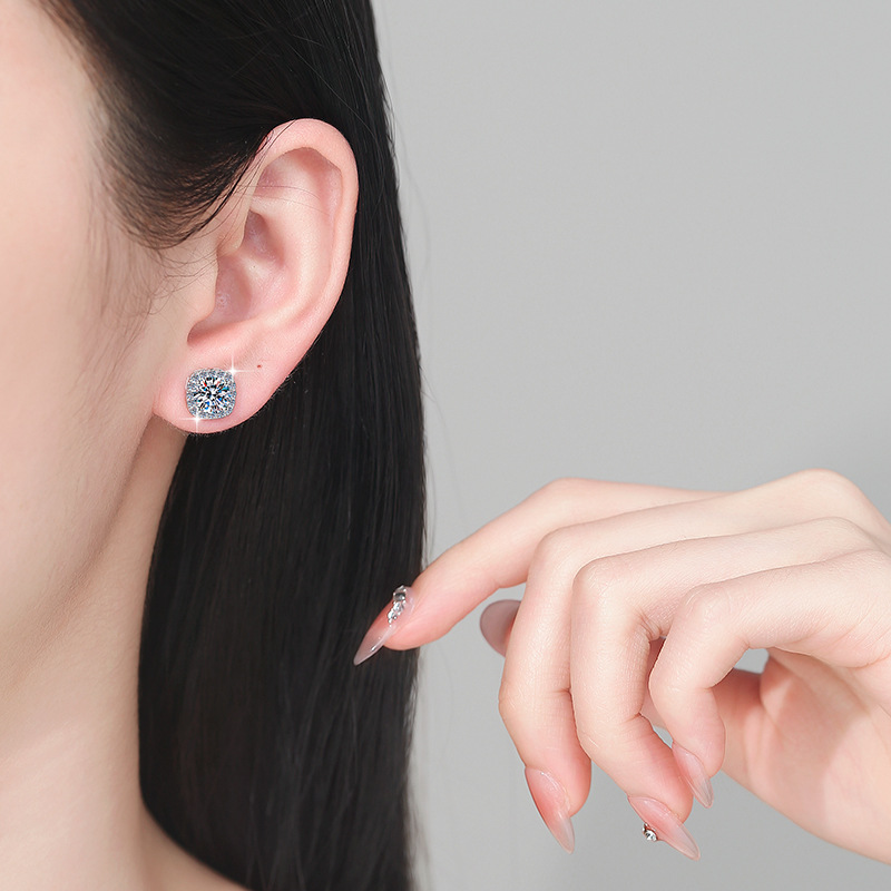 Классические квадратные серьги из серебра 925, простые и стильные геометрические серьги с моиссанитом на 1/2/3/5 каратов для женщин