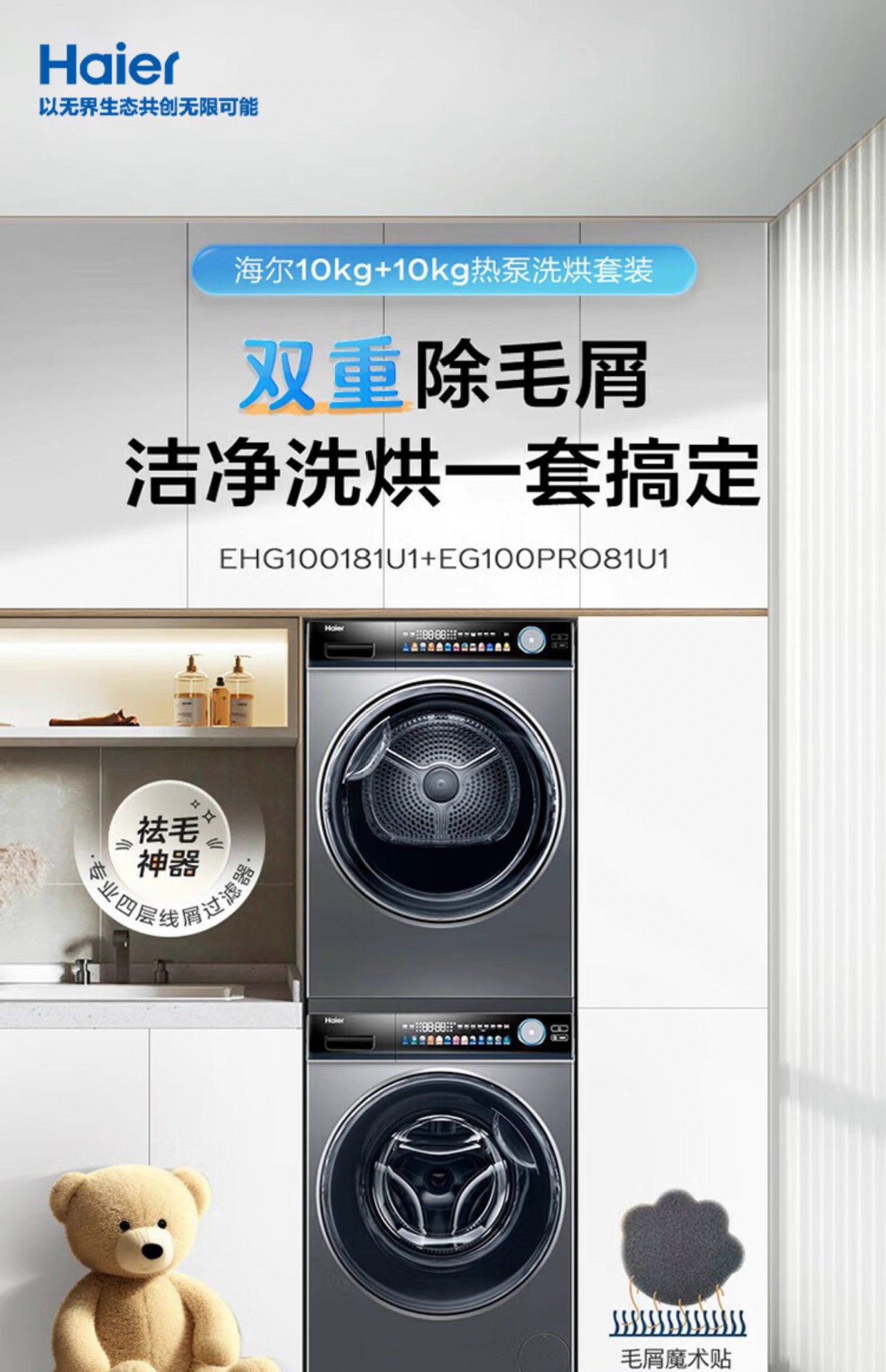 Комплект стирки и сушки Haier Eg100Pro81U1+Ehg100181U1 10кг Прямой привод интеллектуальная подача