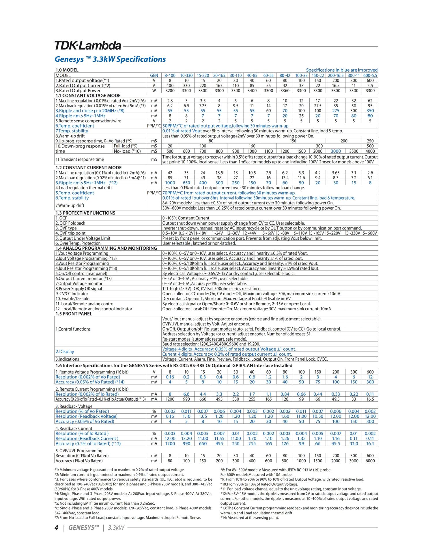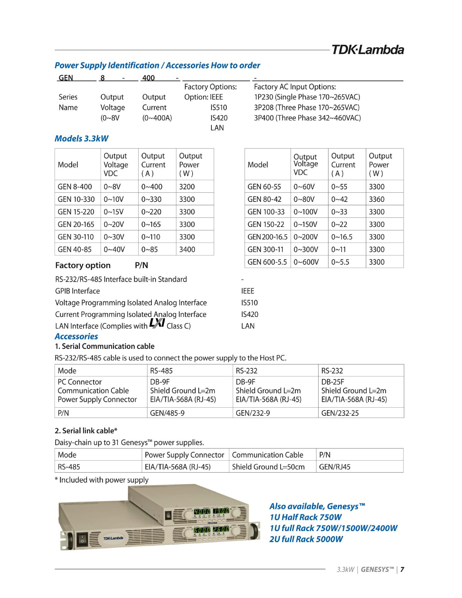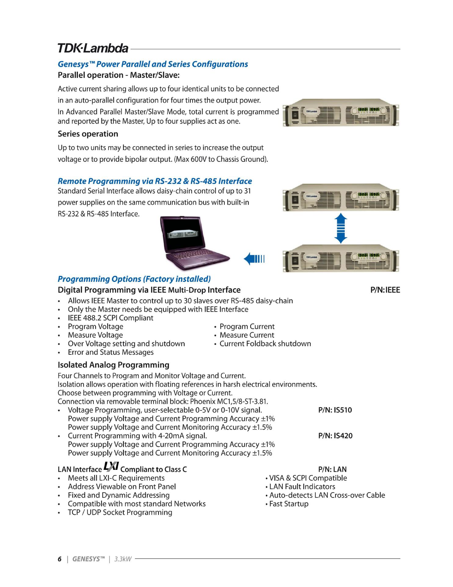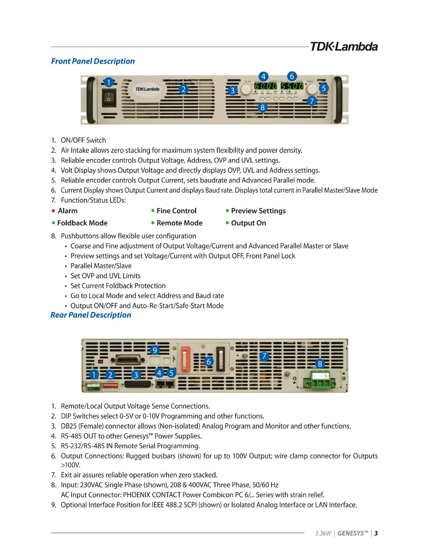 Программируемый источник питания постоянного тока Tdk-Gen-30-110/10-330/15-220 серии Genesys 3300W