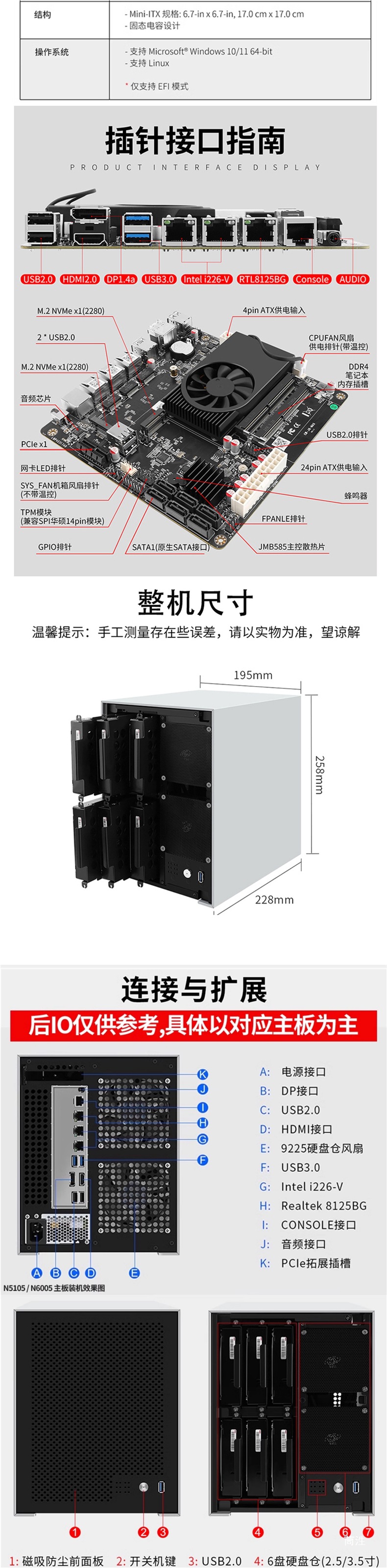 N100 Itx NAS хранилище, N305, N150, N355, низкое потребление энергии, 6-отсековый корпус Fei Niu, Qunhui NAS