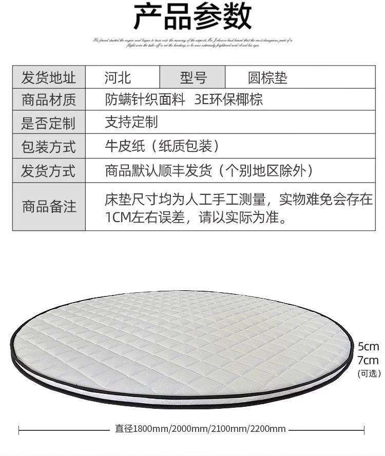 Круглый матрас из кокосовой пальмы, 2м, жесткий, тонкий, складной, для детей и пожилых, защита талии и позвоночника