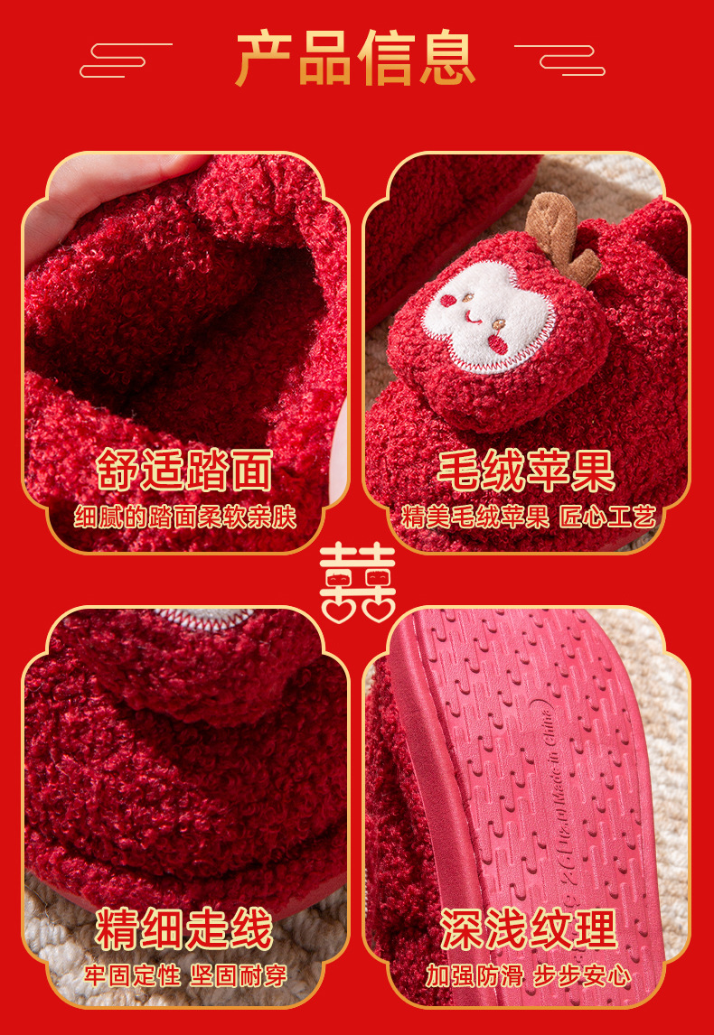Праздничные красные тапочки для свадьбы, домашние, для новобрачных, высококачественные, зимние, с сумкой и каблуком, хлопковые