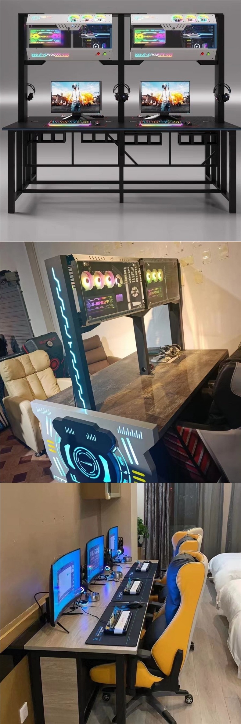 Столы и стулья для интернет-кафе, верхние и нижние слои, стол с воздушным охлаждением, антивандальный стол и стулья для киберспорта, интегрированный шасси