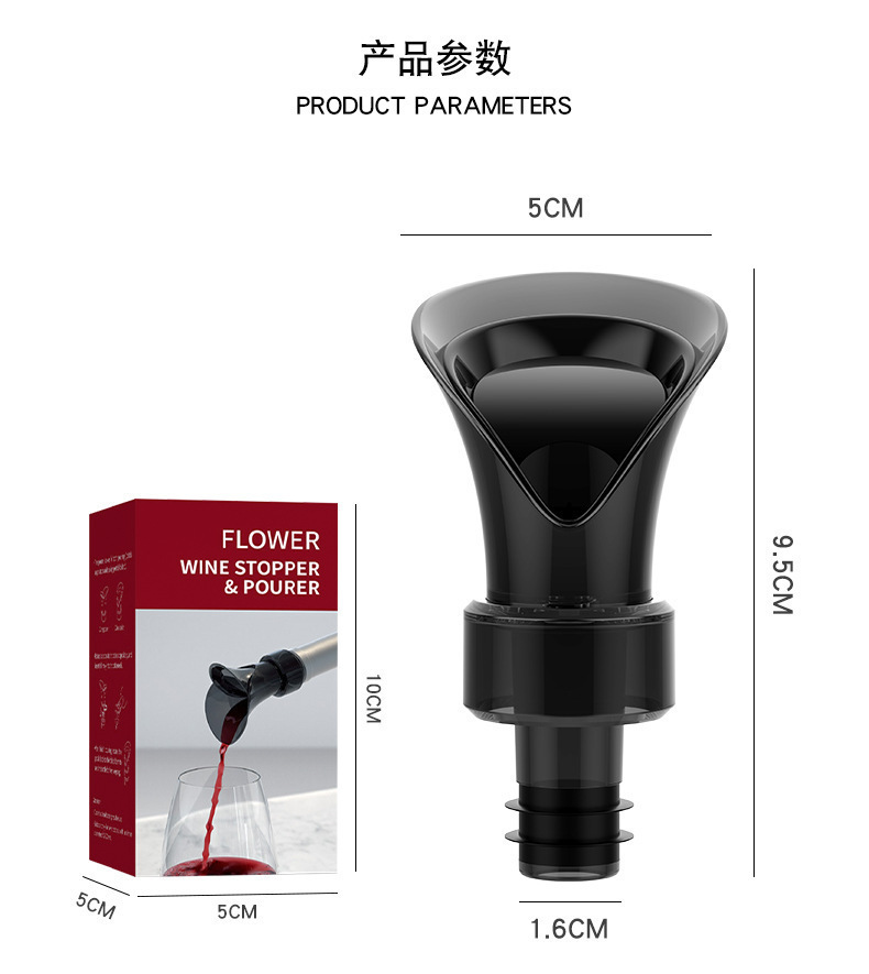 跨意热销创意花瓣型红酒真空保鲜塞存酒倒酒器2合醒酒快速引酒器