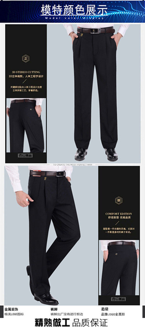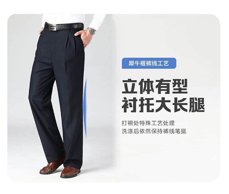 Двухплиссированные брюки для осени и зимы, толстые, свободные, прямые, для среднего и пожилого возраста, с высокой талией, глубокие костюмные брюки, свободные мужские брюки, повседневные и без утюжки