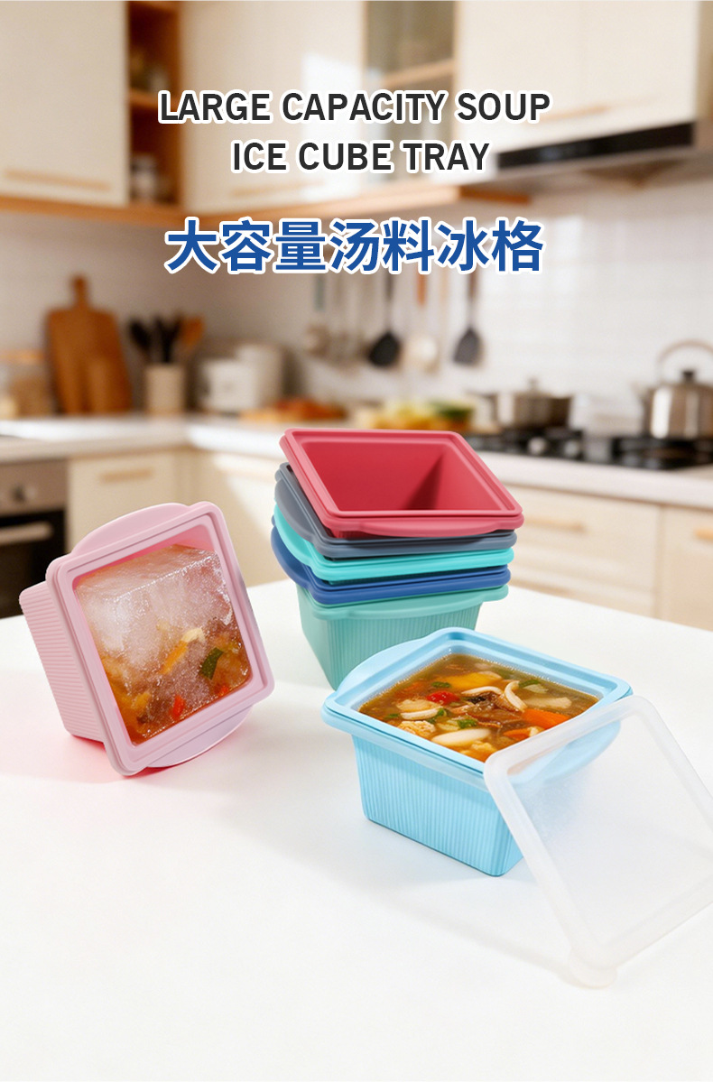 Силиконовая форма для замораживания супа с металлическими разделителями, контейнер для быстрого замораживания и хранения пищи, поднос для морозильника с крышкой