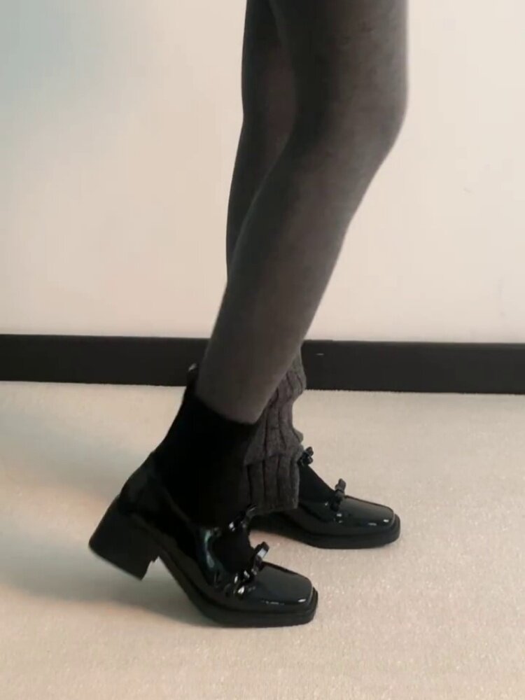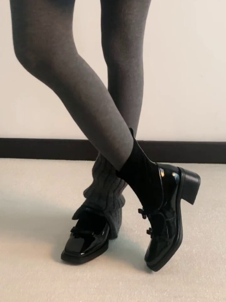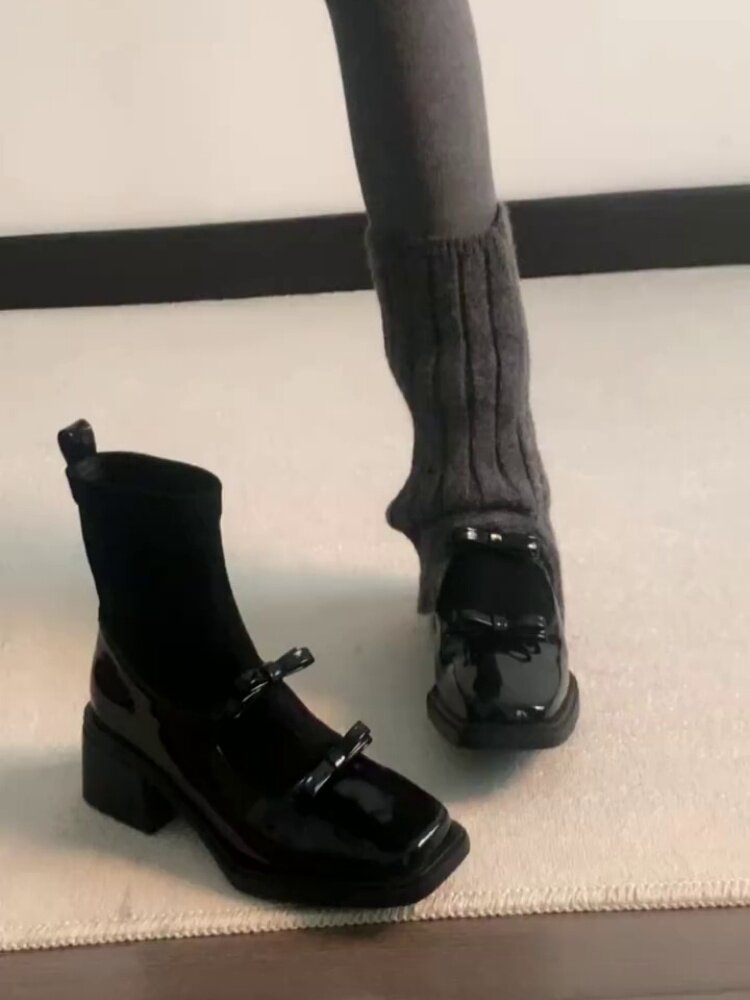 Маленькие эластичные ботинки с бантом, 2025 универсальные квадратные носки, короткие ботинки с задней молнией и утягивающим силуэтом