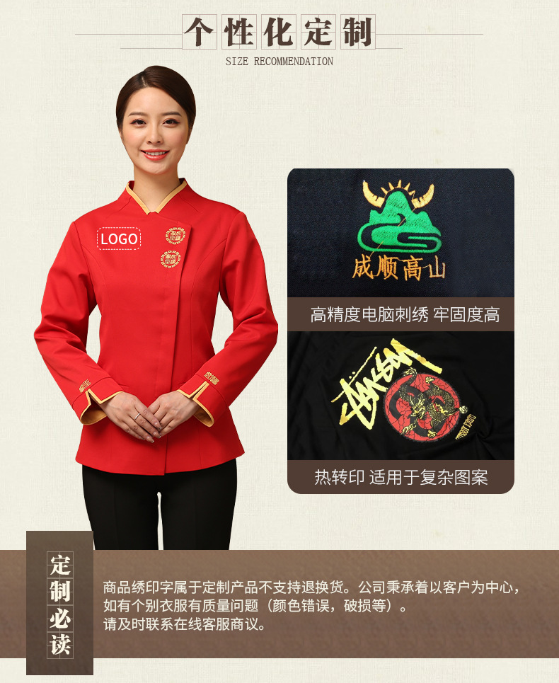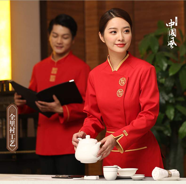 Одежда для официанта, женская, длинный рукав, новый китайский стиль, отель, ресторан, кейтеринг, хот-пот, осень и зима