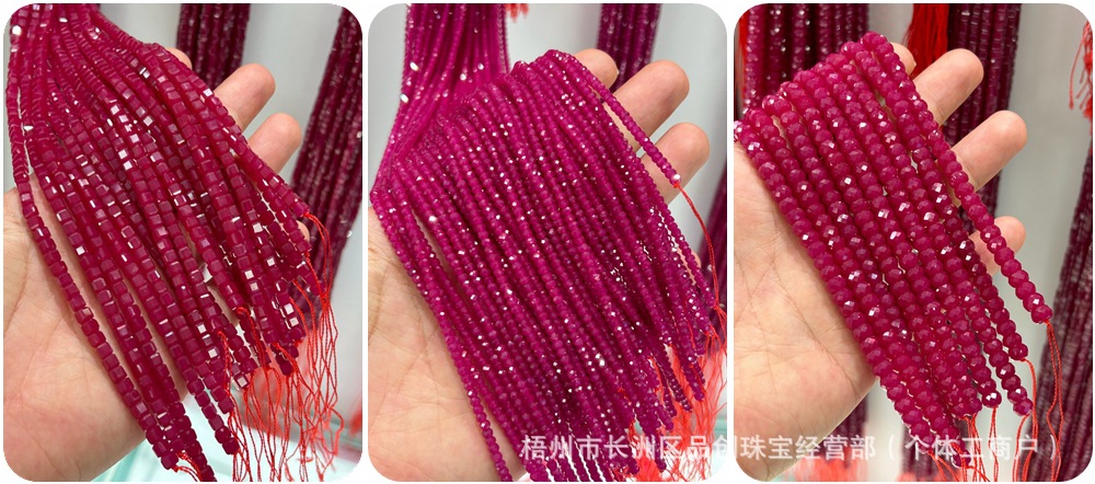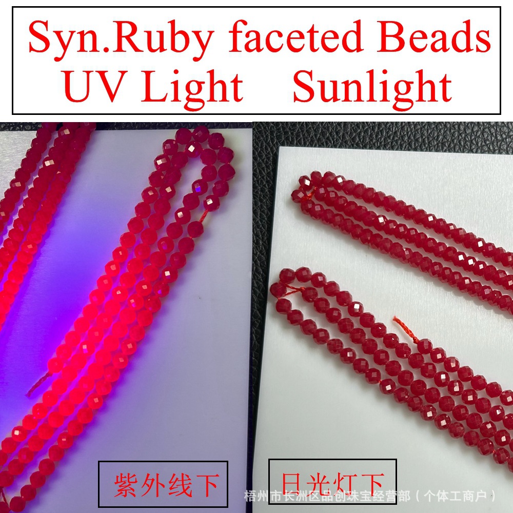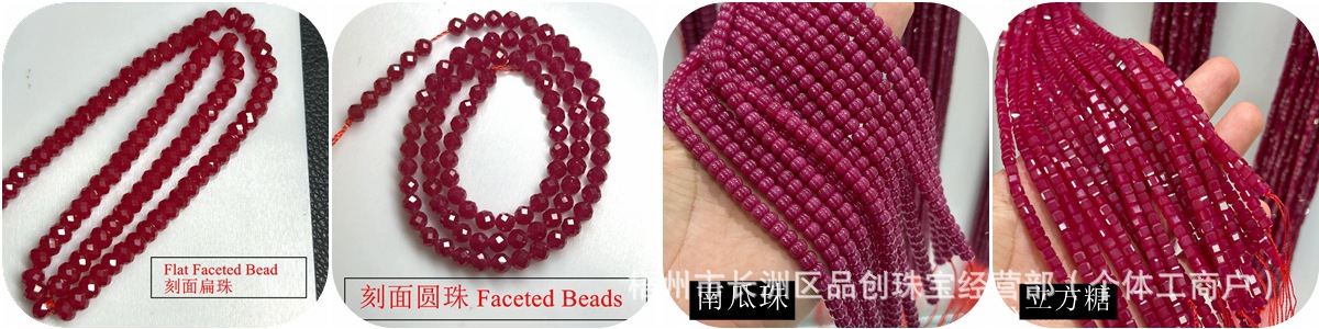 实验室培育红宝石串珠,半透明效果,硬度9。