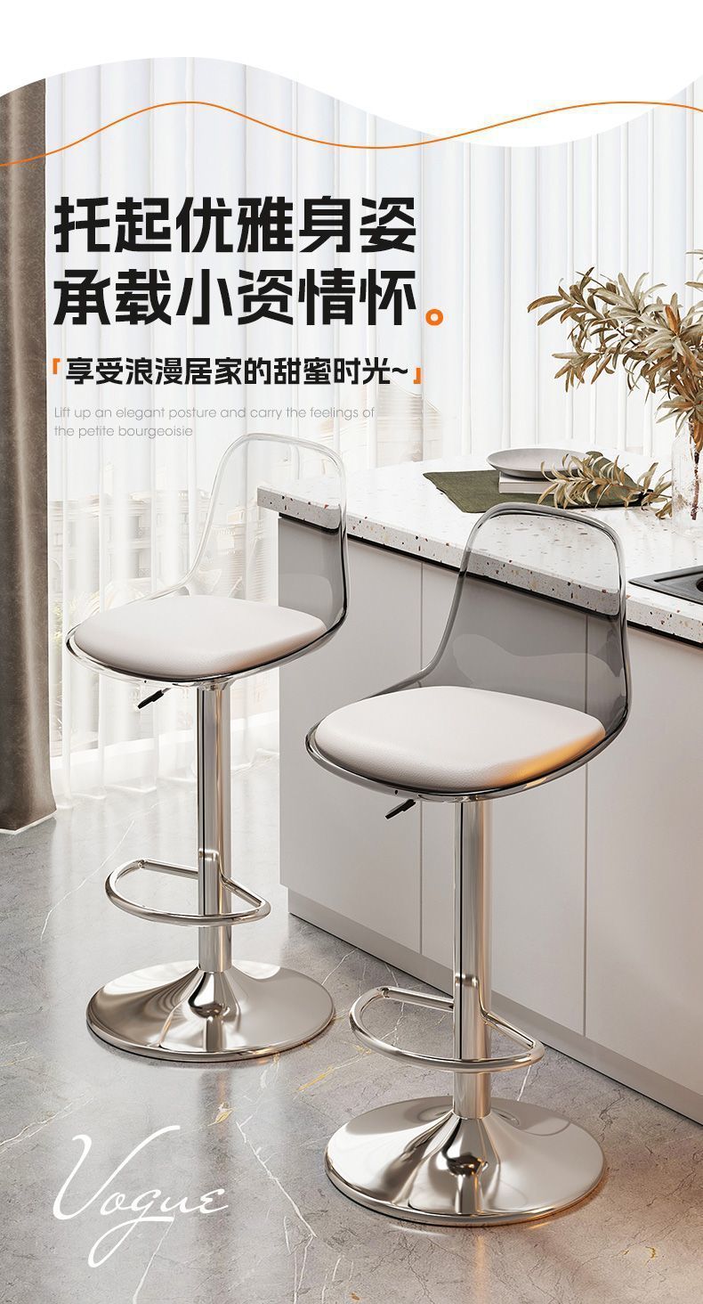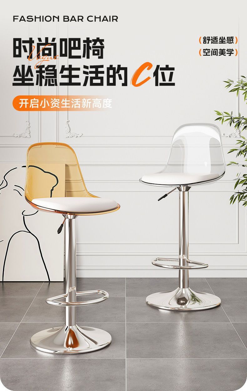 Легкий люксовый барный стул Nordic, современный минималистичный, с подъемным механизмом, с спинкой