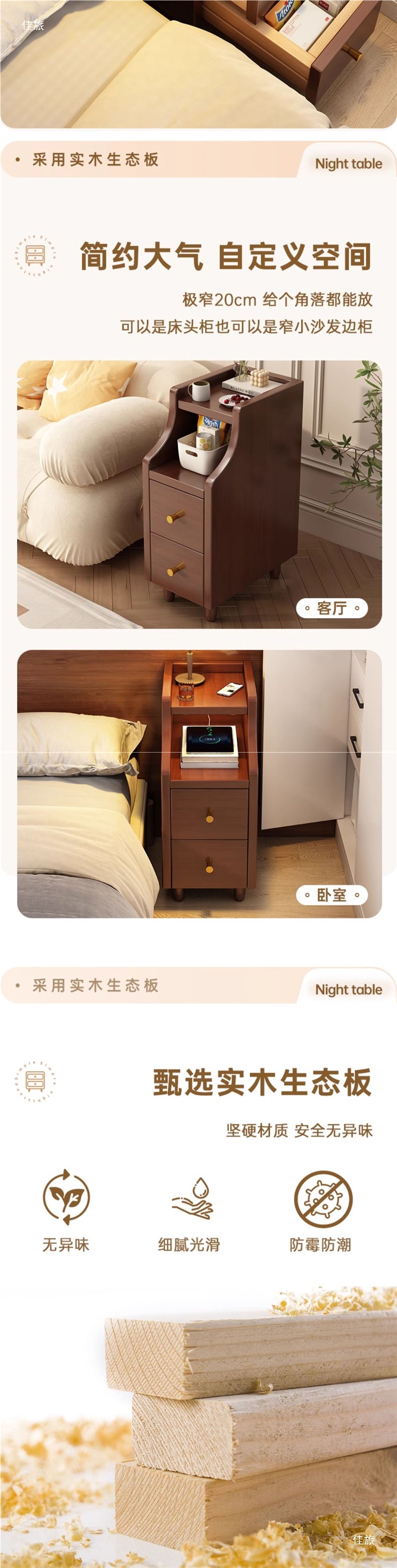 Ультратонкий прикроватный столик из массива дерева, простой современный шкаф для хранения, ультратонкий для спальни, 30 см мини-подставки