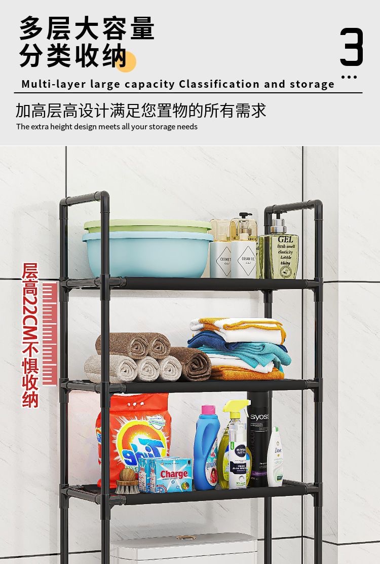 Полка для туалета, трехъярусная, напольная, без сверления, для хранения в ванной