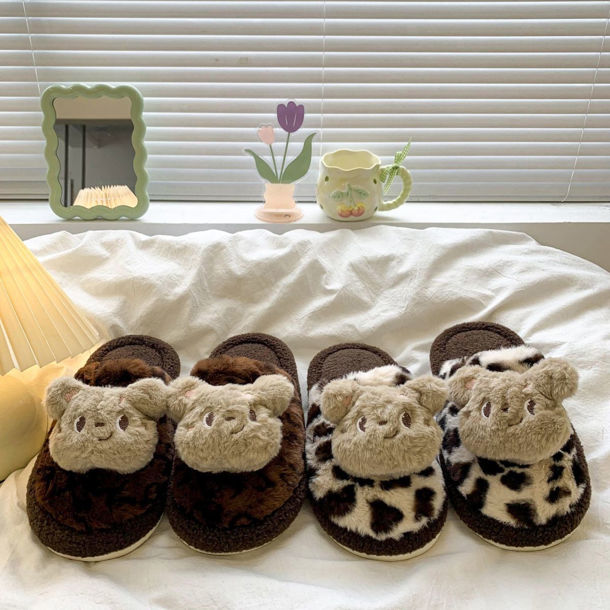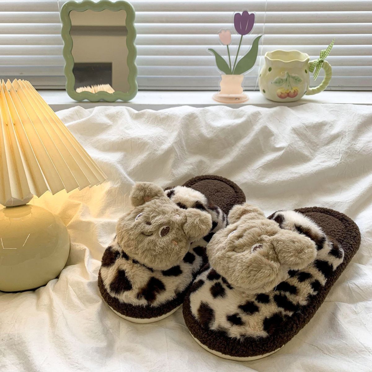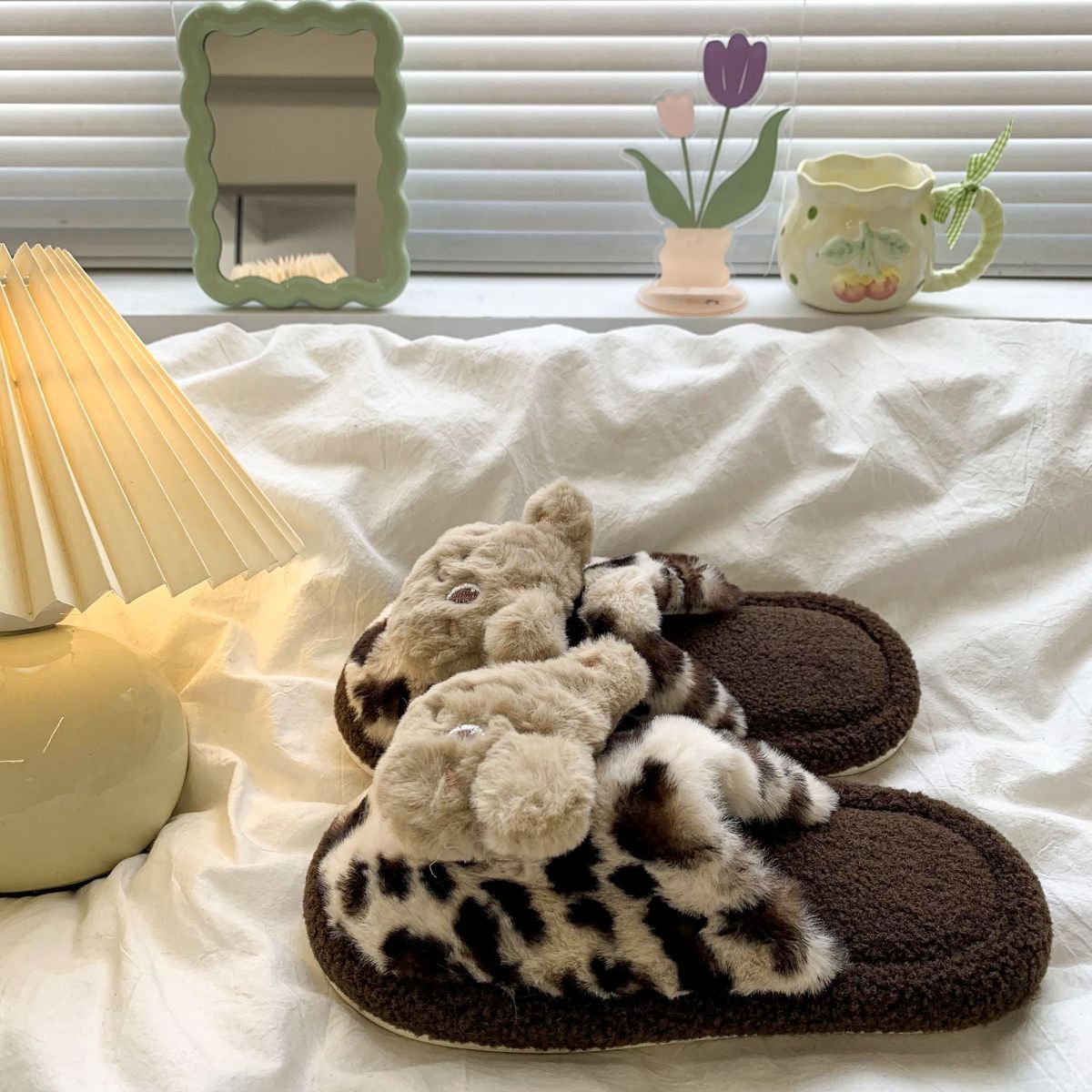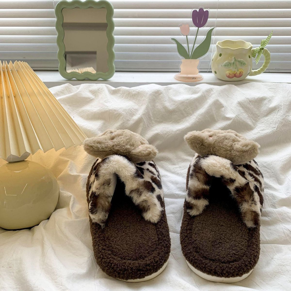 Толстосоленные милые универсальные шлепанцы с леопардовым принтом для женщин 2024 года, осень и зима, нескользящие, мягкие, с капюшоном