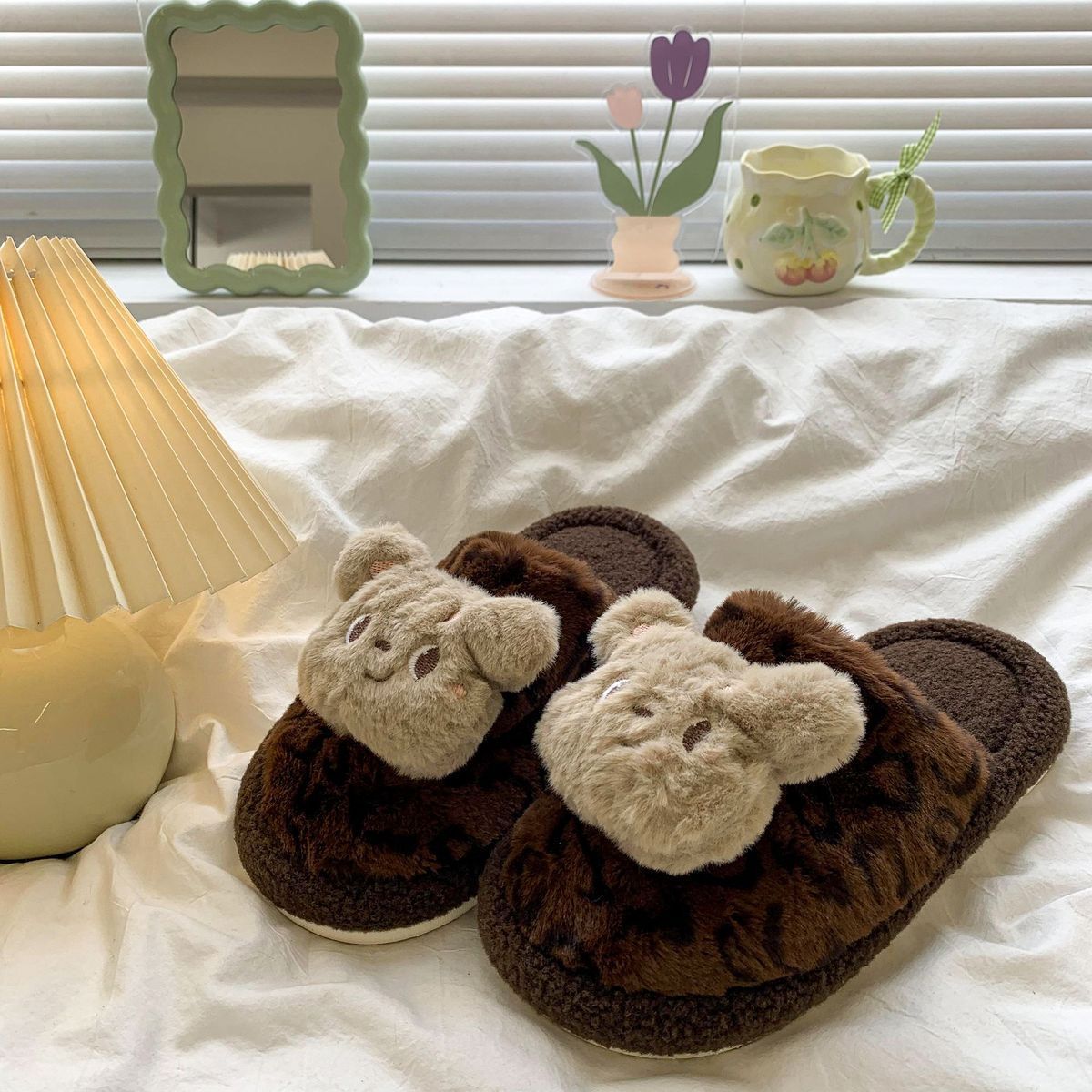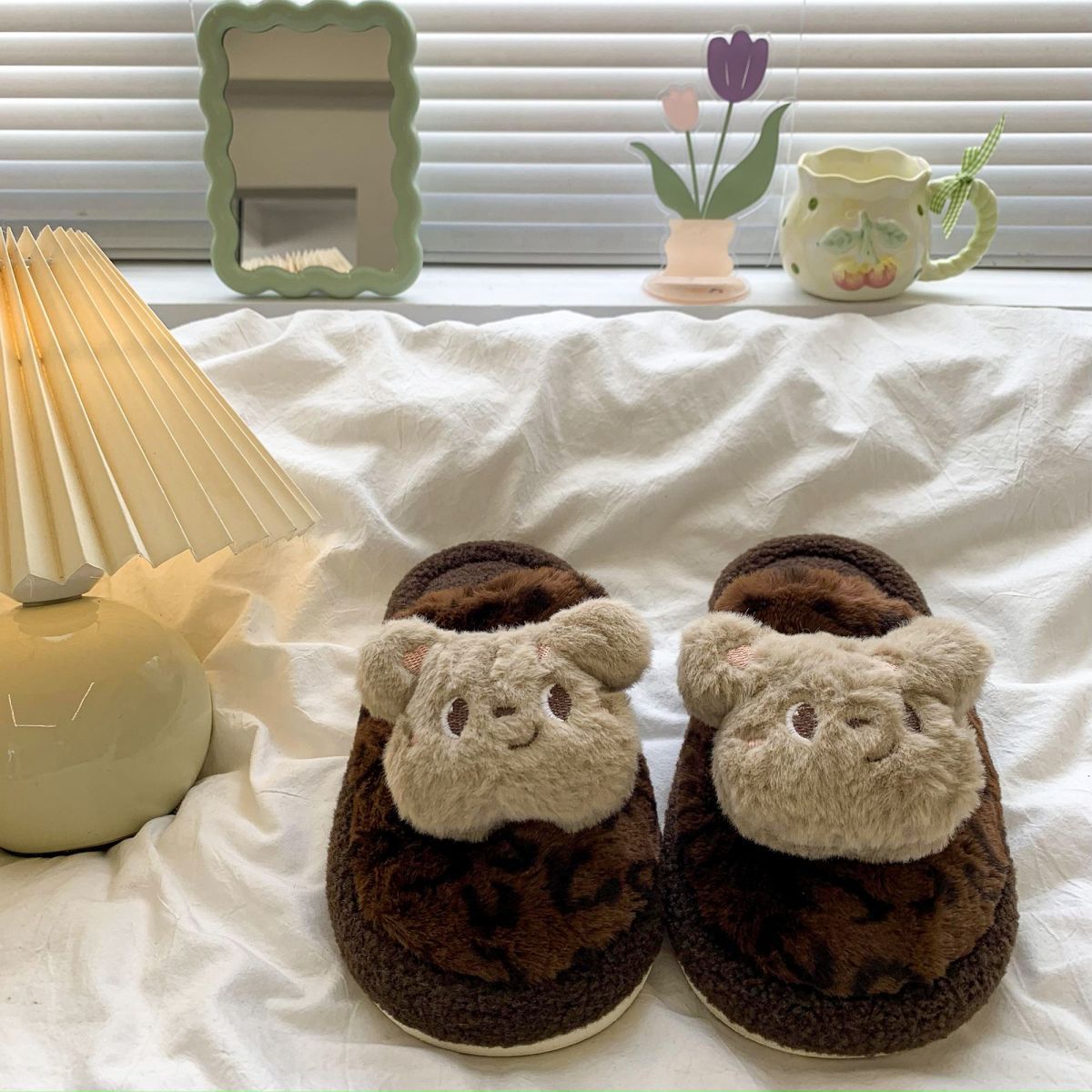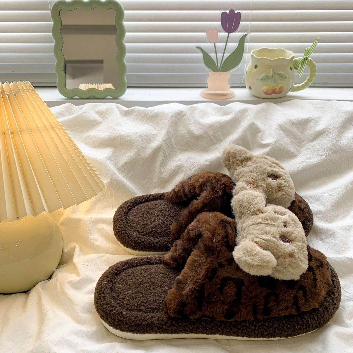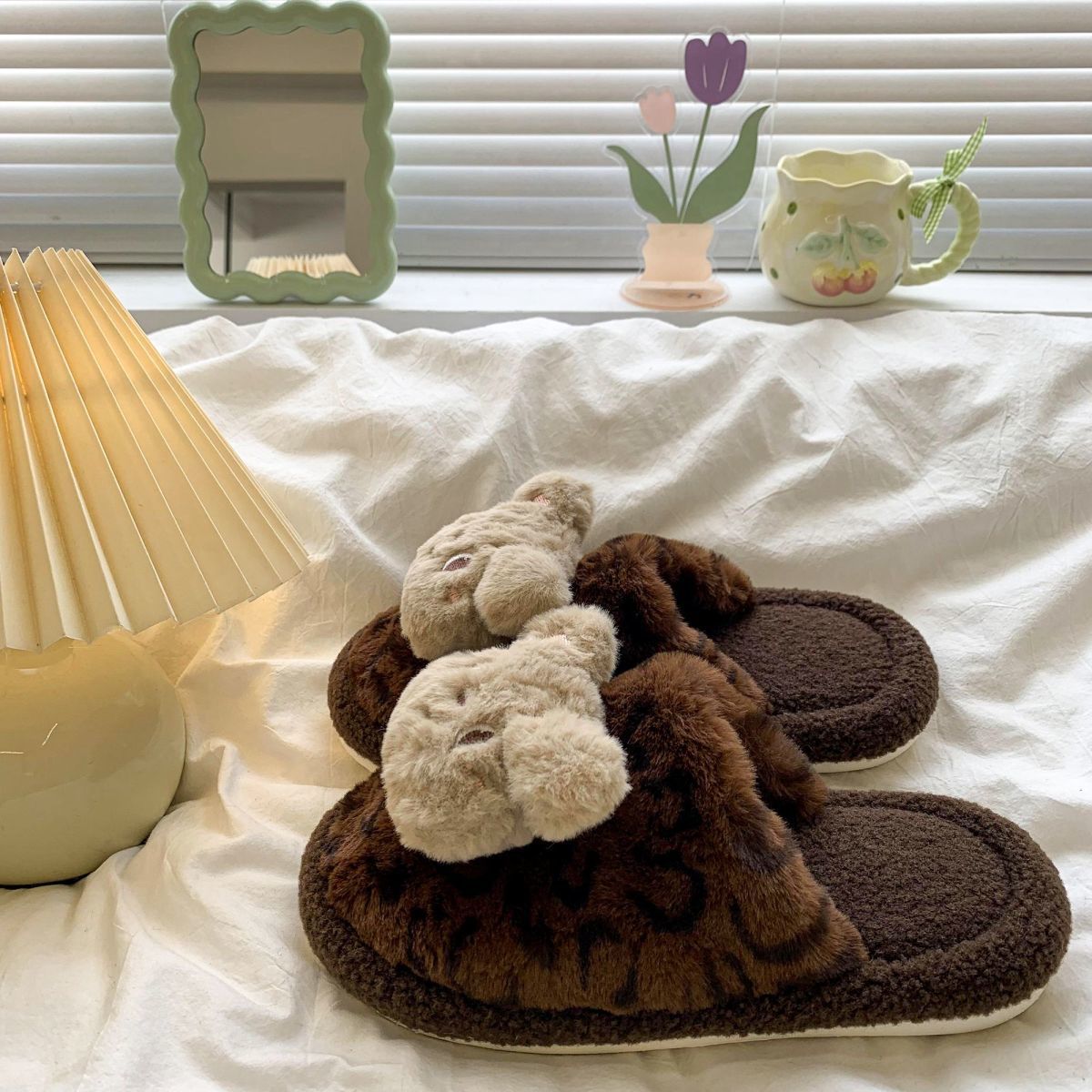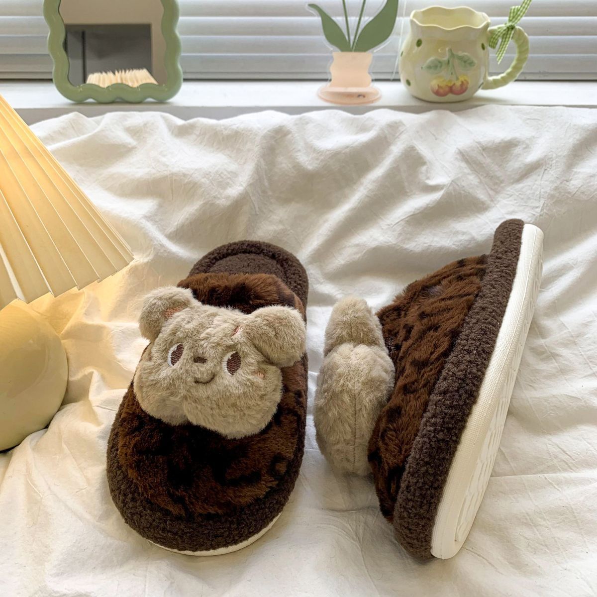 Толстосоленные милые универсальные шлепанцы с леопардовым принтом для женщин 2024 года, осень и зима, нескользящие, мягкие, с капюшоном