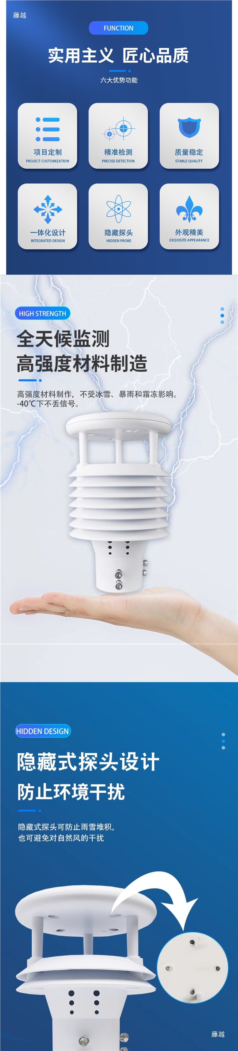 Ультразвуковой метеорологический сенсор, микро метеорологический инструмент, давление, скорость ветра, направление ветра, интегрированный мониторинг окружающей среды, интегрированный люверсовый ящик