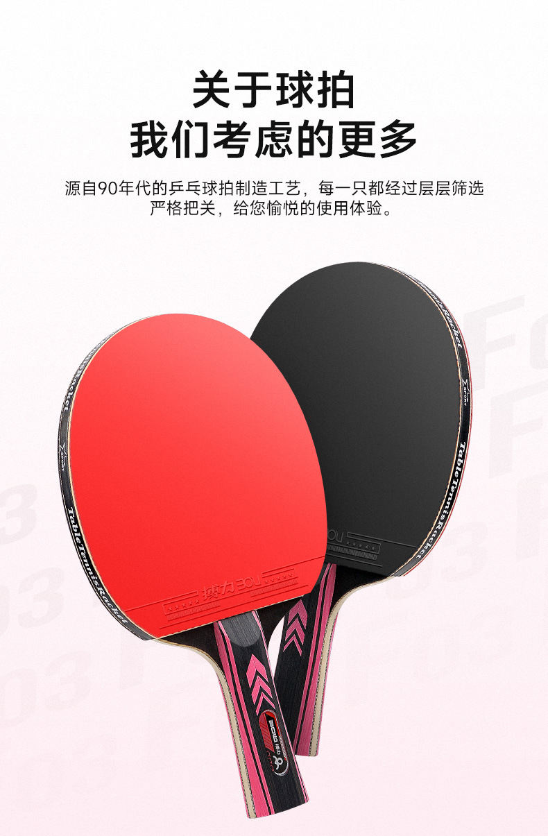 ![]() | F01 high-end 4-star [2 short-handled pen-hold rackets] free 3 balls and 1 racket bag | ¥41.0 / ≈ 486 ₽ | 19887 | 6132126006665 | |