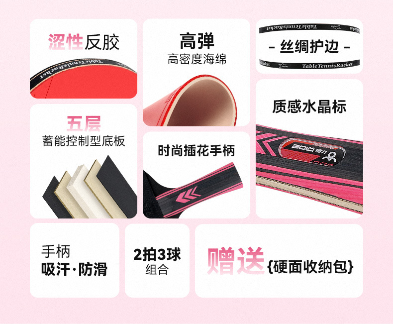 Ракетка для настольного тенниса Bolitong, двойная ракетка для начинающих, детей и взрослых, профессиональный тренировочный комплект