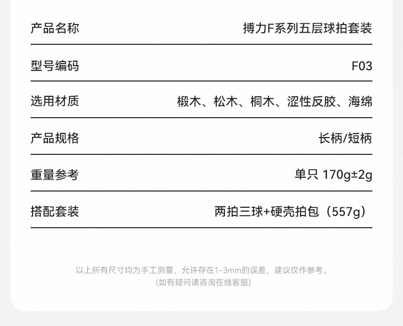 ![]() | F03 match 6 stars [2 short-handled pen-hold rackets] free 3 balls and 1 racket bag | ¥56.5 / ≈ 669 ₽ | 19888 | 6132126006671 | |