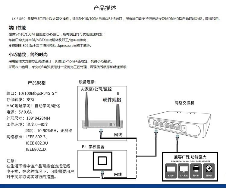 5-портовый 100м коммутатор широкополосного мониторинга оптический модем 100м удлинитель сетевого кабеля сплиттер