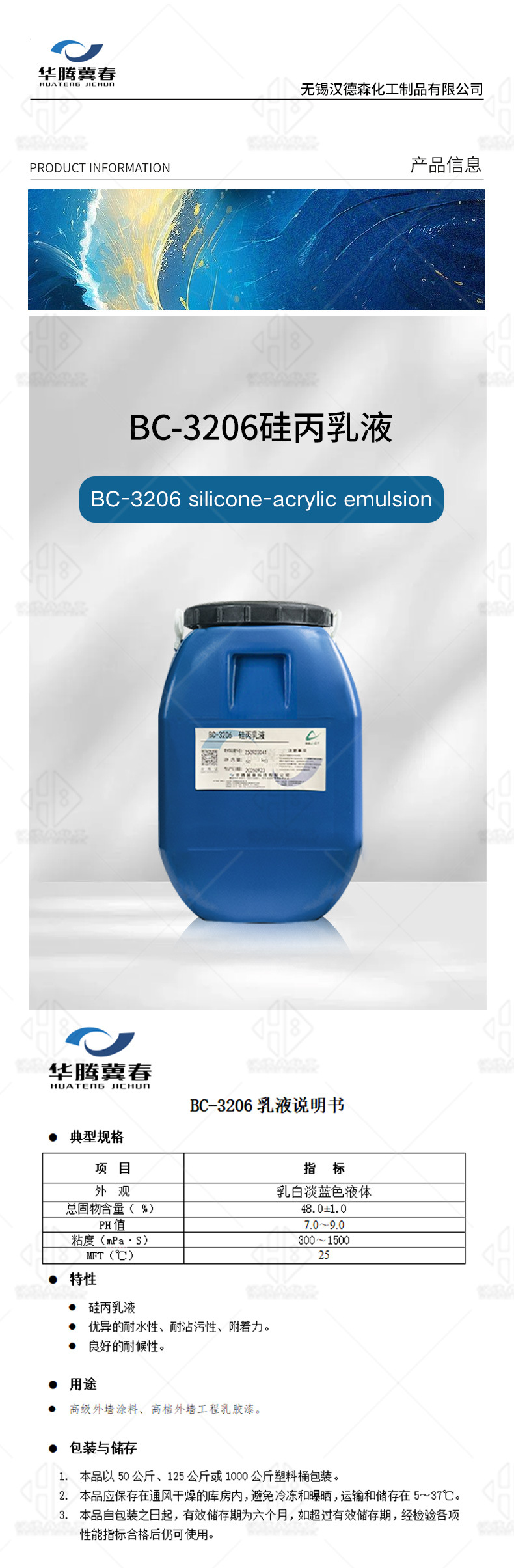 Эмульсия Huateng Jichun Bc-3206 на основе силикон-акрила, специальная эмульсия для высококачественной внешней краски и клеевой краски