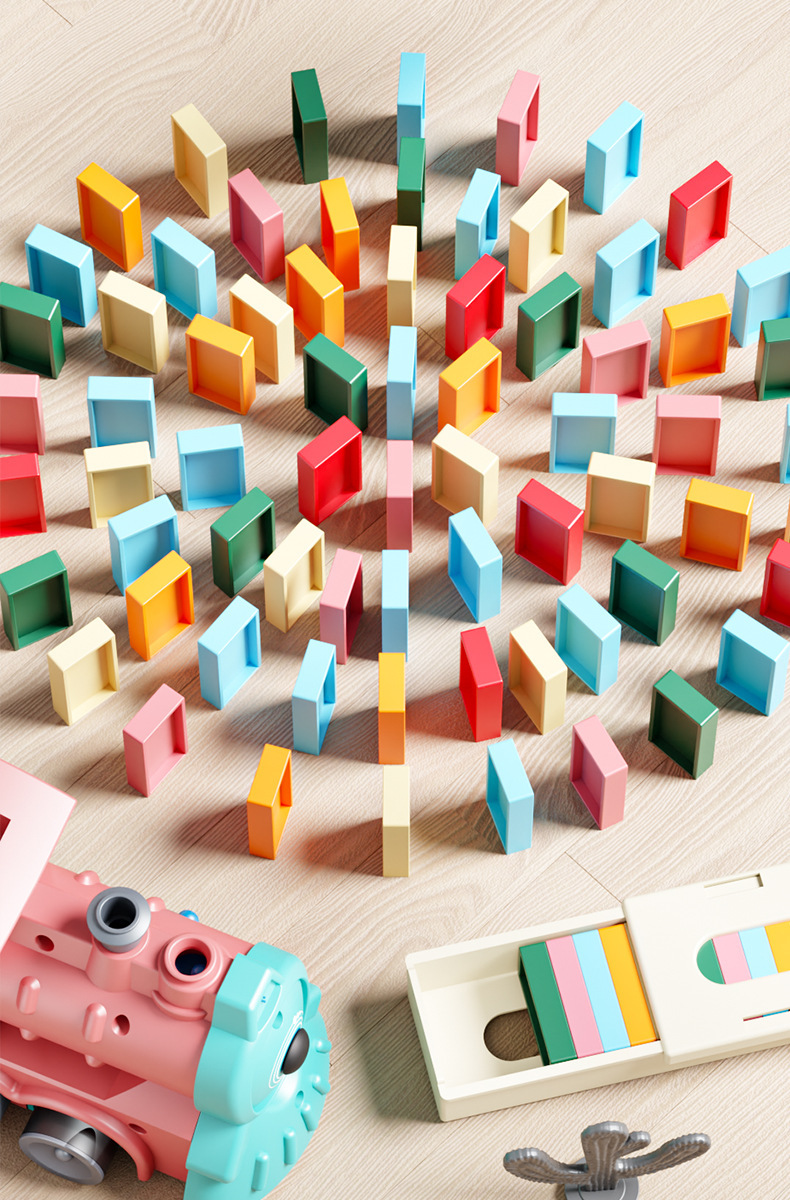 Новые домино поезда DIY автоматическая подача электрическая игрушка раннего обучения образовательный конструктор