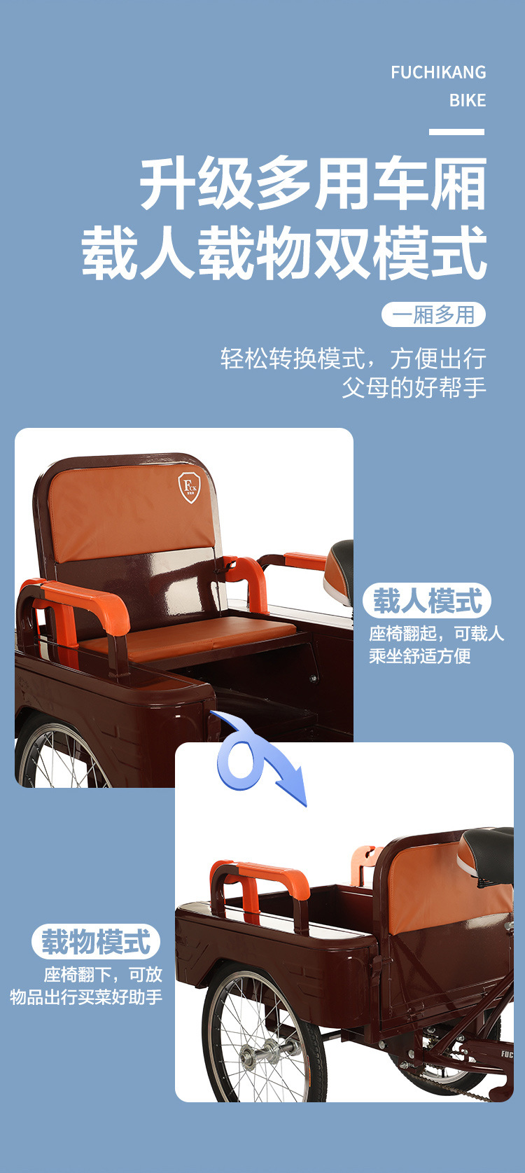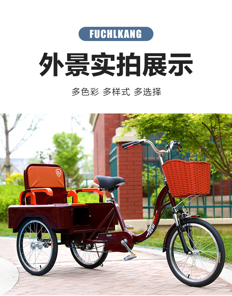 Новая модель трехколесного рикши для пожилых, педальный скутер для пожилых, двойной автомобиль для взрослых с детьми