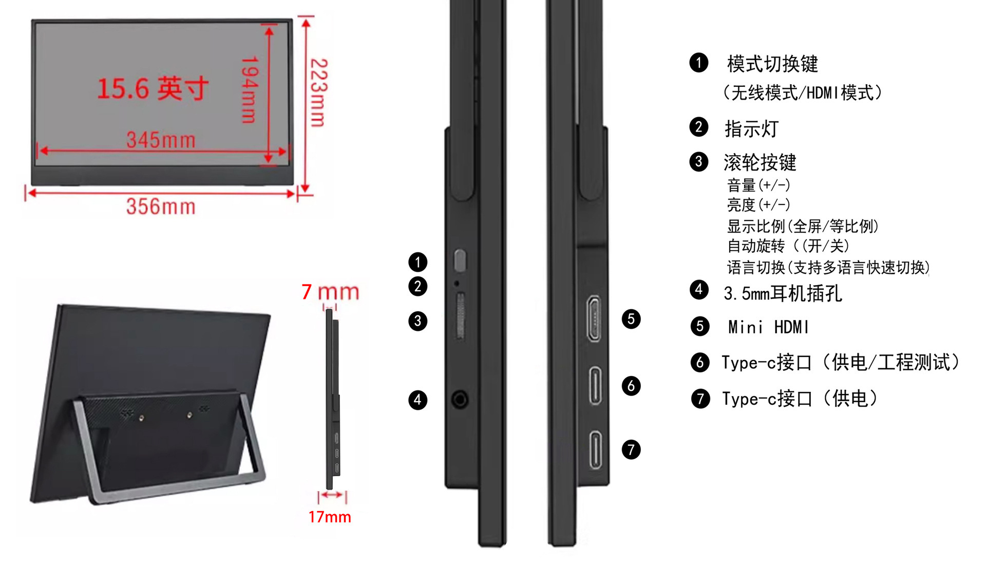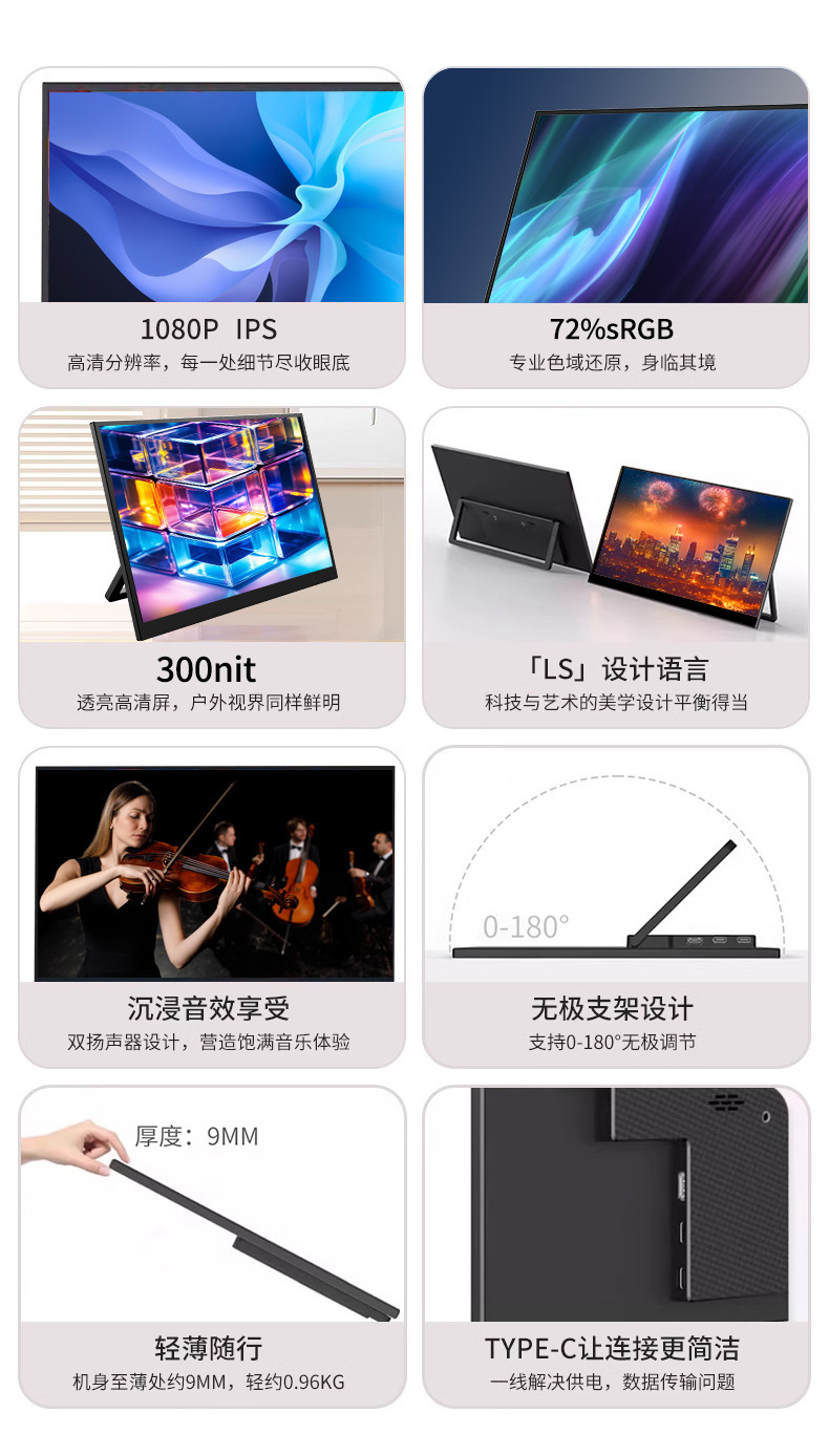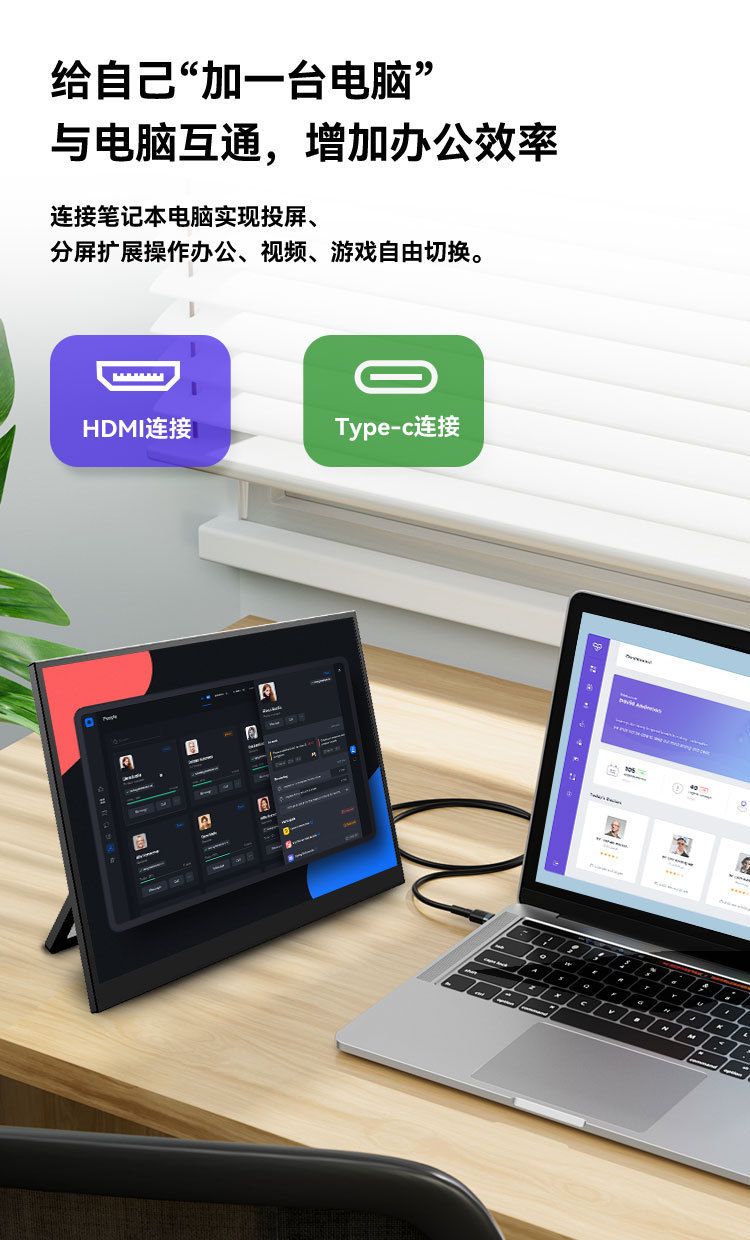 Беспроводной портативный дисплей 15.6 дюйма, проекция экрана Android Fruit Phone Pc, универсальное расширение для компьютера Ips