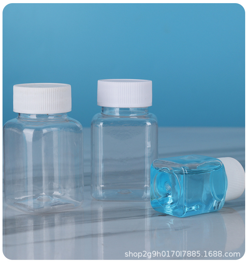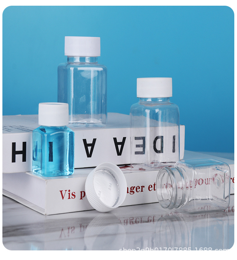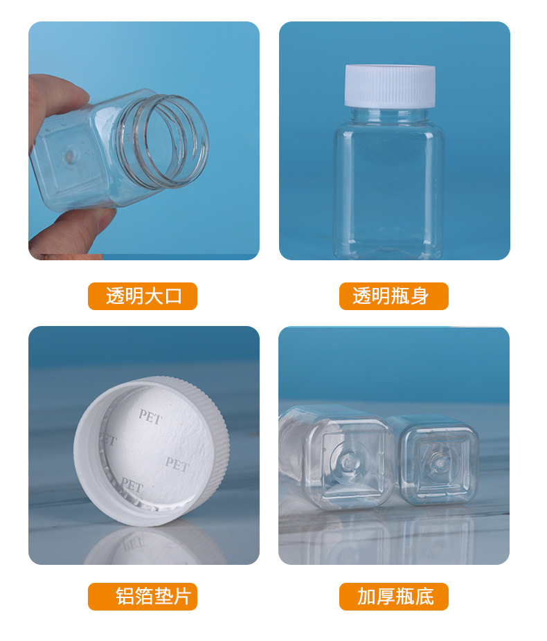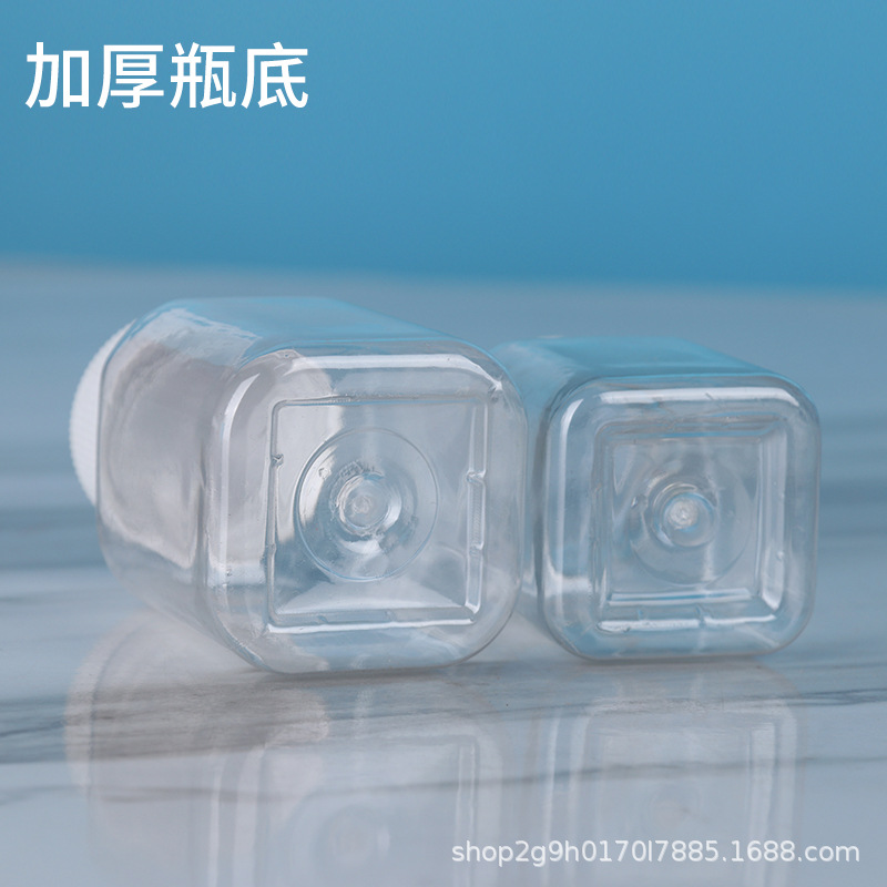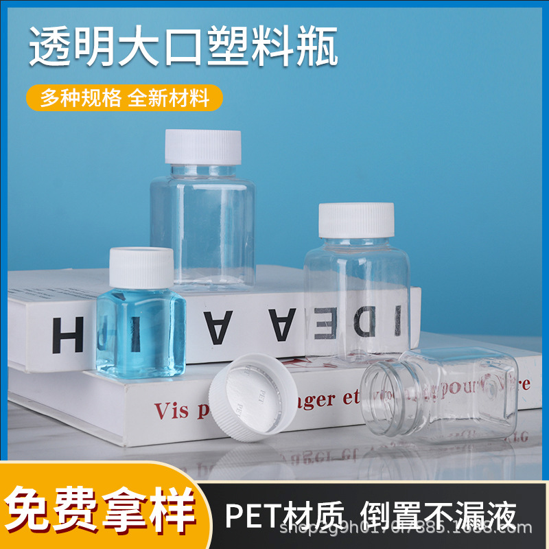 Оптовые прозрачные пластиковые бутылки, квадратные бутылки с широким горлом, бутылки пищевого качества, бутылки для бобов, портативные маленькие бутылки для лекарств