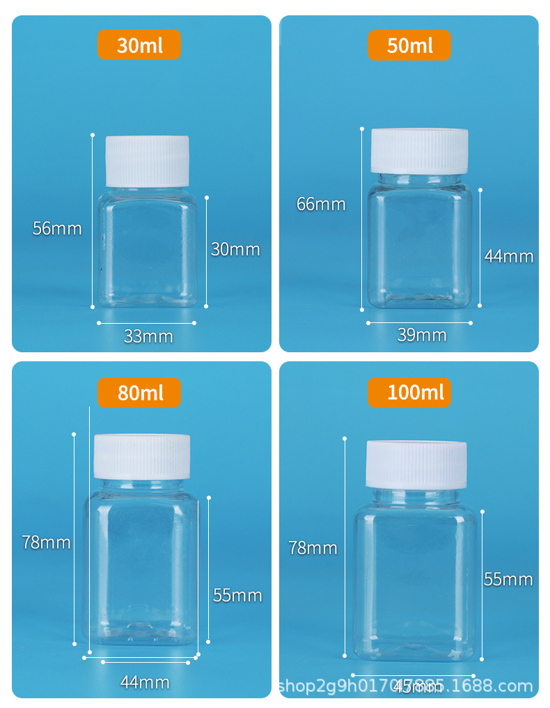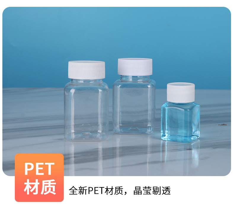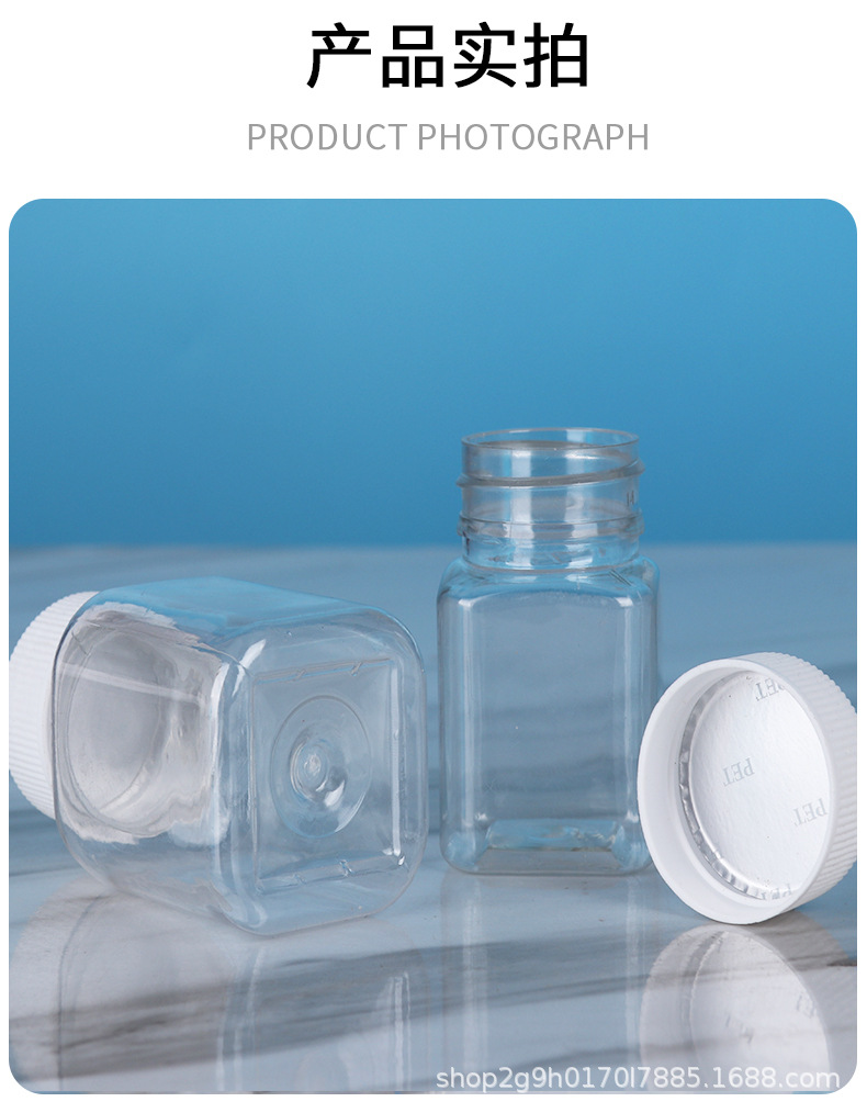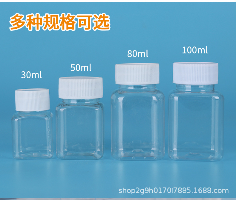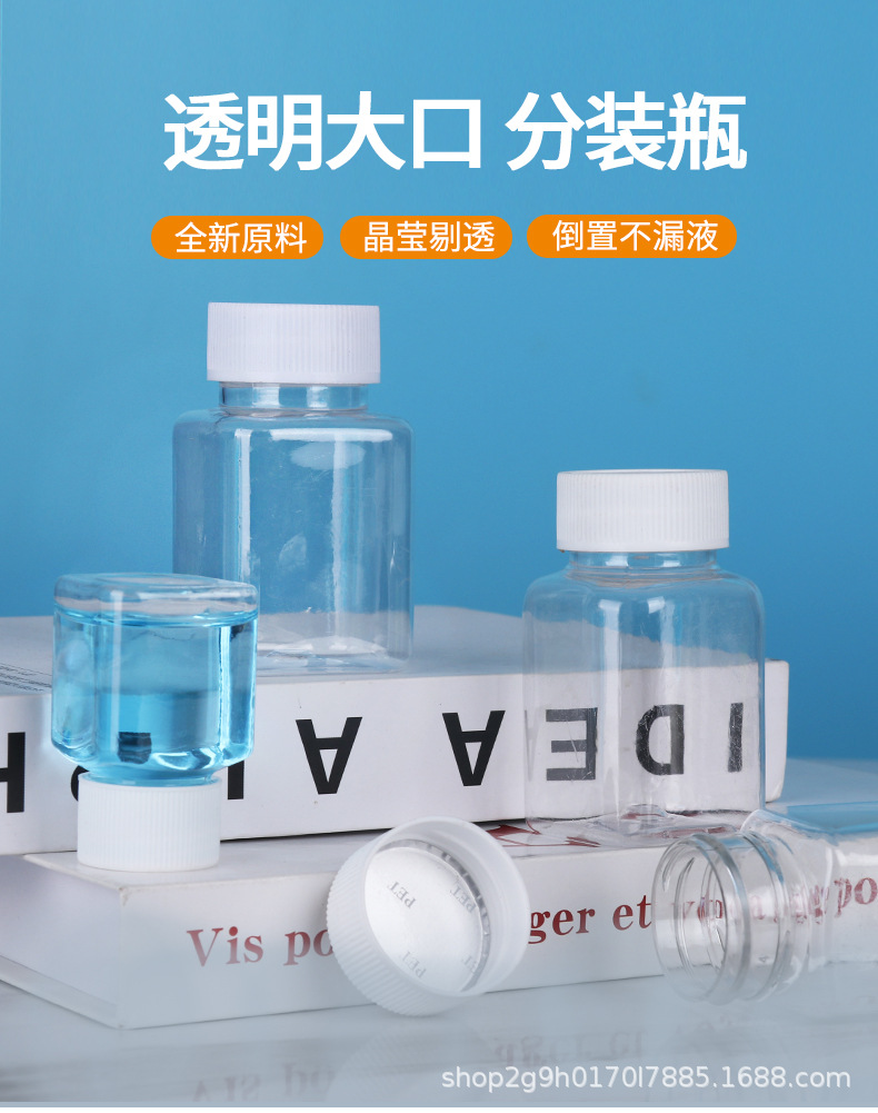 Оптовые прозрачные пластиковые бутылки, квадратные бутылки с широким горлом, бутылки пищевого качества, бутылки для бобов, портативные маленькие бутылки для лекарств